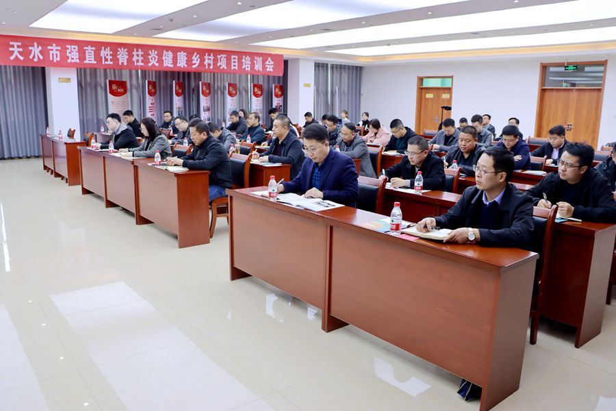 为贯彻落实省卫生健康委、省民政厅、省乡村振兴局、省医疗保障局《关于推进实施甘肃省强直性脊柱炎健康乡村项目的通知》精神,全面推动我市强直性脊柱炎健康乡村项目顺利实施。3月19日,天水市卫生健康委召开全市强直性脊柱炎健康乡村项目培训会议。市卫生健康委党组成员、副主任杨智才参加培训会并讲话。各县区卫生健康局分管领导、联络员,市第一人民医院、各县区人民医院、中医医院分管领导及内科(风湿免疫科)、中医科负责同志共40余人参加培训。