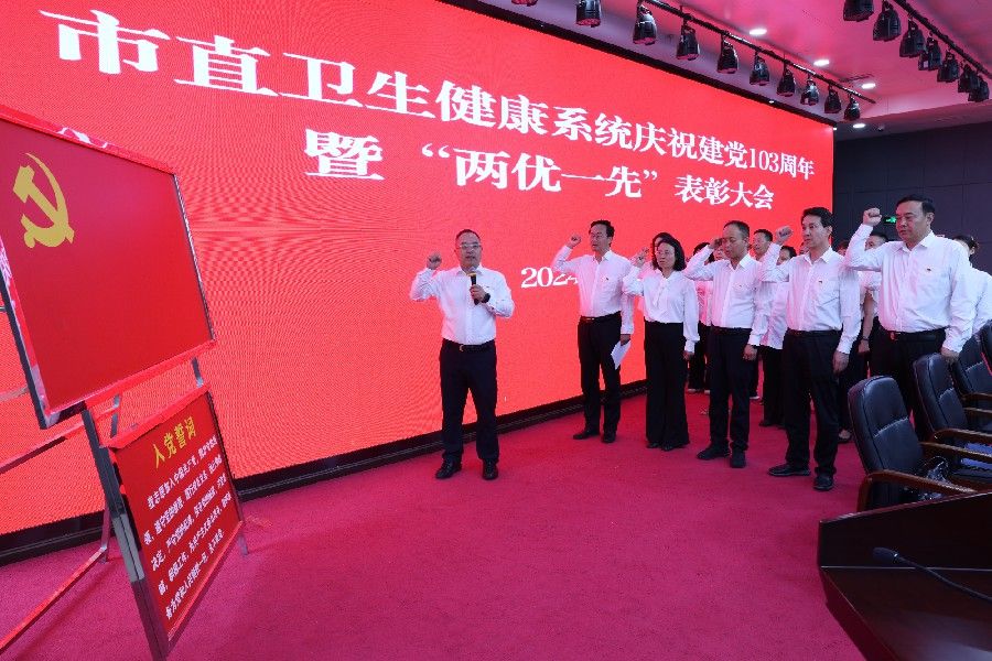 会前,新党员进行了入党宣誓仪式,老党员重温了入党誓词。会议宣读了《中共天水市委卫生健康工委关于表彰市直卫生健康系统优秀共产党员优秀党务工作者和先进基层党组织的决定》,表彰了75名优秀共产党员、15名优秀党务工作者和10个先进基层党组织,三位“两优一先”代表进行了交流发言。市委卫生健康工委书记、市卫生健康委党组书记、主任王定新向市直卫生健康系统各级党组织和全体党员致以节日的问候,向受到表彰的党组织和个人表示热烈的祝贺。