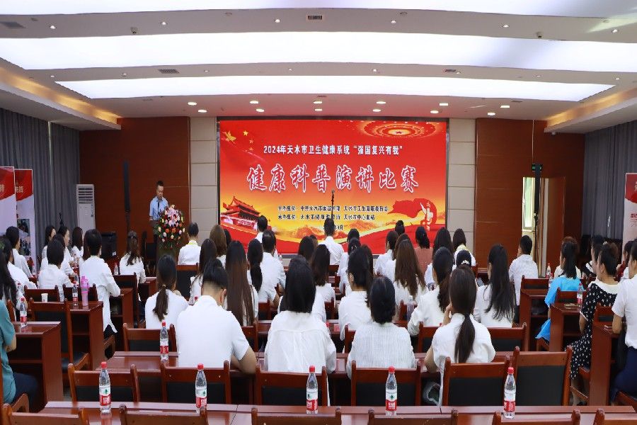 为庆祝中华人民共和国成立75周年、认真学习贯彻习近平总书记视察甘肃重要讲话和指示精神、深入推进“健康天水”建设,9月26日,市委宣传部、市卫生健康委联合举办天水市卫生健康系统“强国复兴有我”健康科普演讲,市委宣传部四级调研员张少刚、市卫生健康委副主任杨智才、市卫生健康委四级调研员焦永明出席活动,各县区卫生健康局、市直各医疗卫生单位代表80余人参加活动。