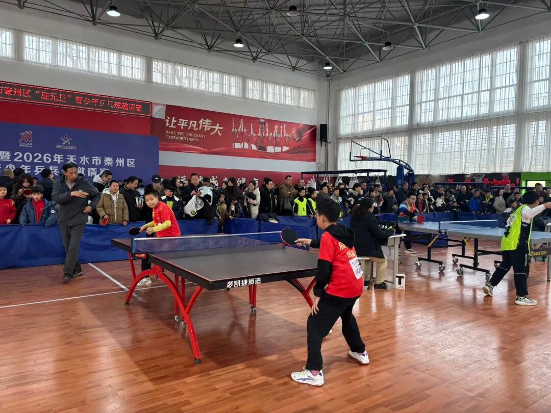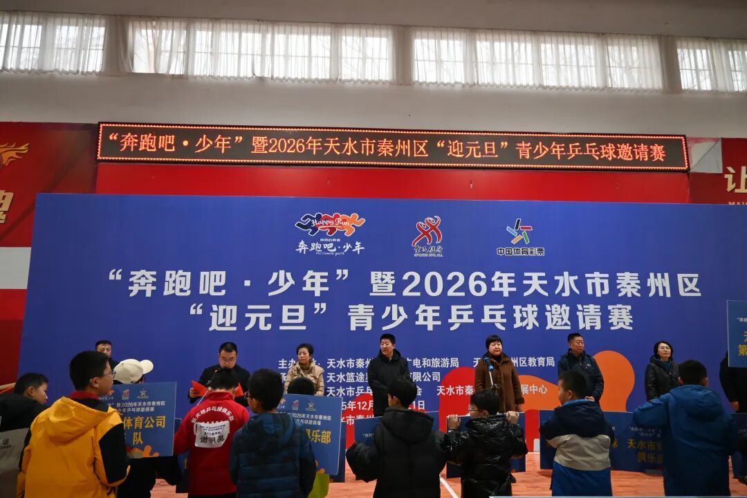 为深入推进体教融合发展,丰富青少年课余文0体生活,营造欢乐祥和的元旦节日氛围,2025年12月19日-21日,“奔跑吧·少年”暨2026年秦州区迎元旦青少年乒乓球邀请赛在秦州区南山体育场开赛。本次赛事由秦州区文体广电和旅游局、秦州区教育局联合主办,天水蓝途星耀体育有限公司承办,天水市乒乓运动协会、天水市秦州区体育发展中心协办。此次比赛吸引了全市49只代表队、580余名乒乓球小将同台竞技、一展风采。