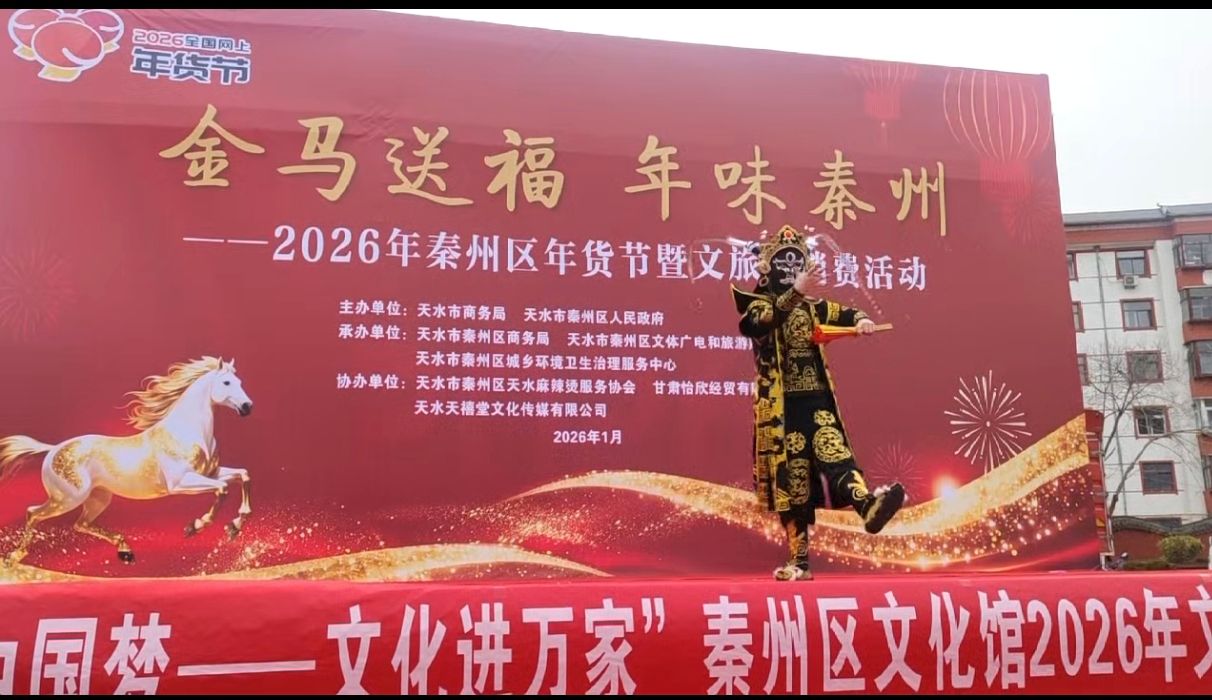 1月30日,在伏羲广场举办的“金马送福·年味秦州——2026年秦州区年货节暨文旅促消费”活动中,伏羲庙、玉泉景区、苏湾文化旅游区、花舞南山等旅游景区集中开展旅游现场推介,向市民游客免费发放景区门票,掀起新春文旅消费热潮。