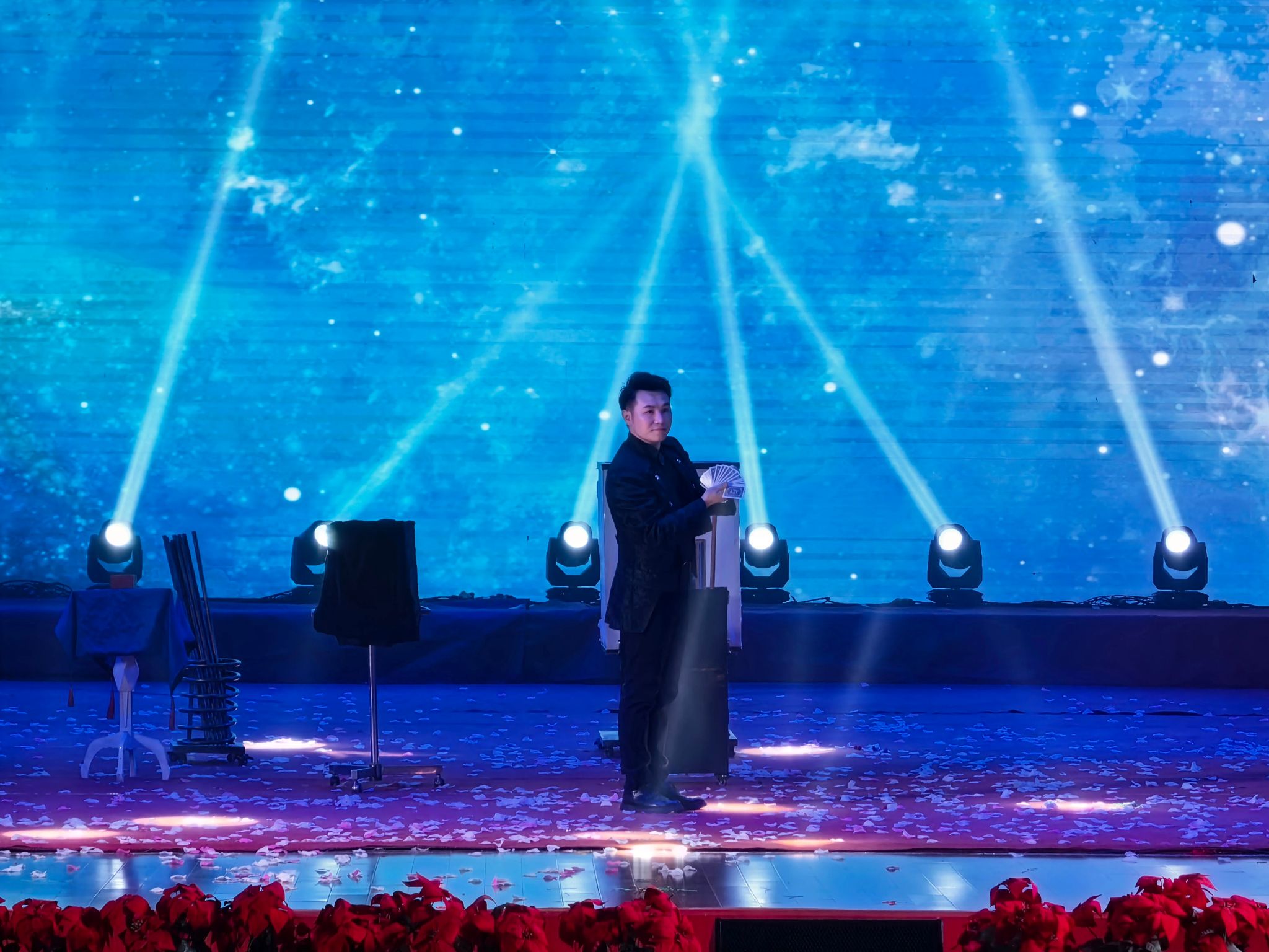 开场舞蹈《醒狮走马闹新春》以灵动的舞姿与喜庆的意象,瞬间点燃现场氛围,《花开时节》《春风花信来》等舞蹈节目,以优美舞姿展现春日盛景,魔术《鸽剧魅影》带来奇幻视觉体验,相声《欢歌笑语》幽默诙谐的表演传递民生温情,小品《家有喜事》聚焦民生幸福,引发全场共鸣。歌曲《天地龙鳞》气势磅礴,秦腔联唱《国粹一秦韵》彰显传统戏曲魅力,朗诵《红船》赓续红色血脉,情景舞剧《千年鼓韵》更是将武山民俗文脉与舞台艺术深度融合,武术《武乡雄风》刚劲有力,彰显武山尚武精神。闭幕曲《我们决胜未来》激昂嘹亮,凝聚奋进力量。