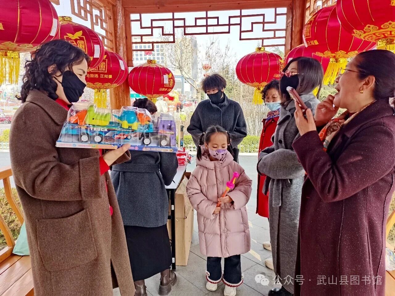 正月十五元宵夜,华灯初上,书香氤氲。为传承中华优秀传统文化,充分发挥图书馆新时代文明实践阵地作用,推动全民阅读深入开展,3月2日至3日,武山县图书馆举办的以“书海藏谜趣·灯火闹元宵”为主题的灯谜竞猜活动,在县文体中心东侧九立亭长廊、天水市摩崖石窟文化旅游区祈福广场同步启幕,千余位群众、读者齐聚一堂,在灯影谜蕴中欢度佳节,在翰墨书香里共赴团圆。