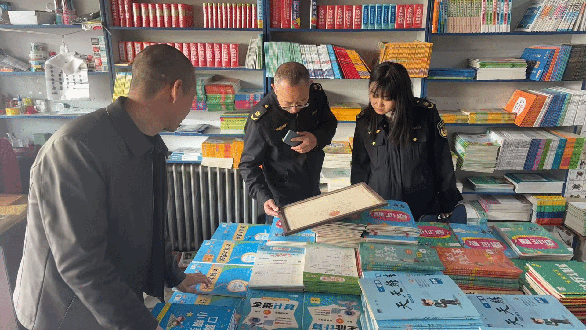 本次检查以校园周边为重点管控区域,紧盯书店、文具店、打字复印店、网吧、文创商铺等高频接触场所,坚持“拉网排查、逐店核验、隐患清零”。执法人员重点核查经营资质是否齐全有效、出版物进货渠道与台账是否规范可追溯,严厉查处销售非法出版物及含淫秽色情、暴力恐怖、封建迷信等有害内容“口袋本”、不良文创产品等违法行为;严格检查网吧实名登记、未成年人禁入制度落实情况,同步排查消防安全、用电安全等隐患,坚决阻断有害文化产品流入校园周边。对排查发现的台账不全、标识不规范等问题,现场责令立即整改,确保问题见底清零。