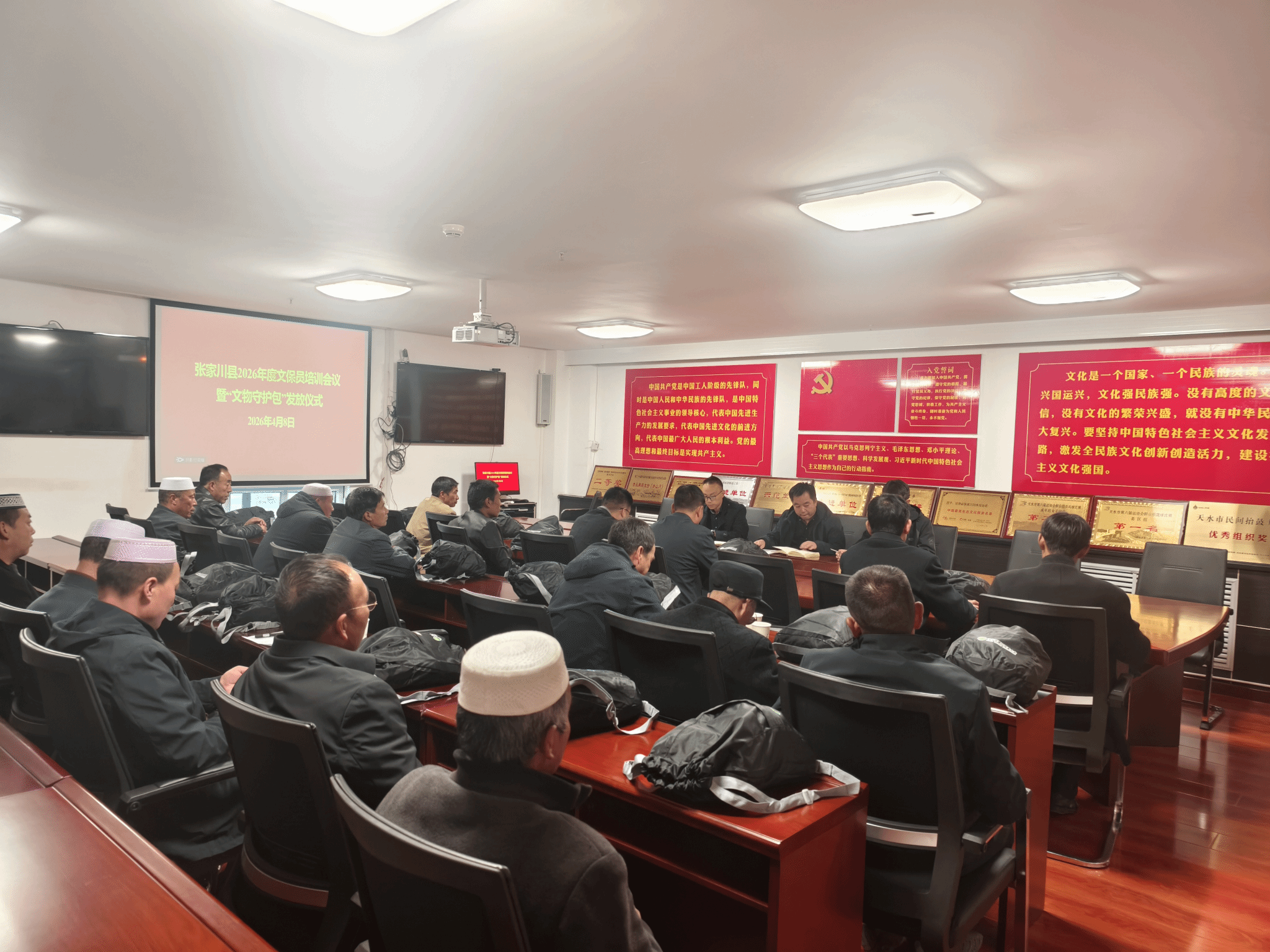 为深入贯彻落实习近平总书记关于文物工作重要论述精神,切实提升基层文物保护队伍专业素养,筑牢全县文物安全防线。4月8日,张家川县局召开2026年度文保员培训会议暨“文物守护包”发放仪式。县内全国重点文物保护单位、省级文物保护单位及各文物点文保员,共计30余人参加培训。