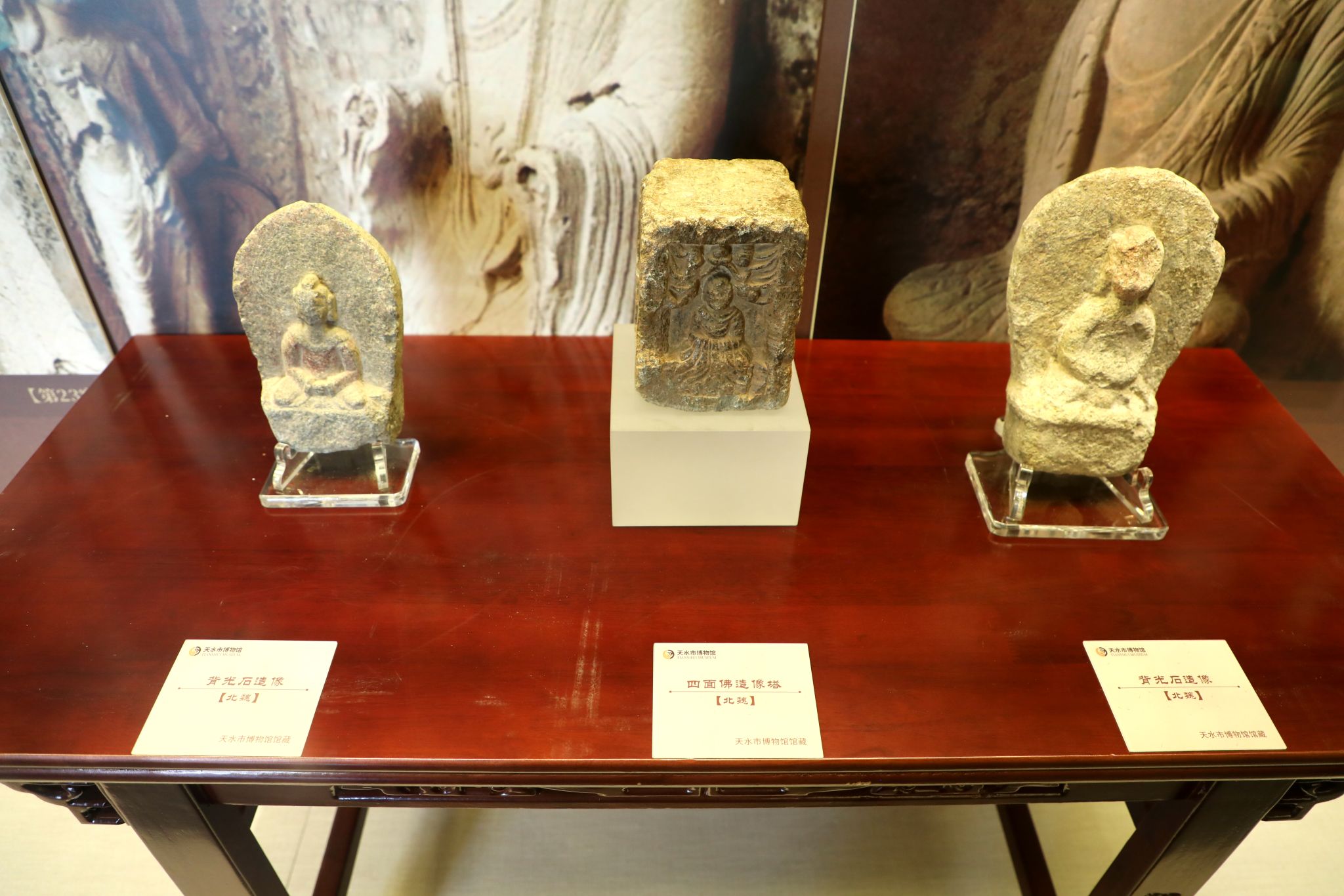 展览以展示天水地区馆藏北朝佛教造像为依托,配以文字、图片展板,旨在向观众展示从十六国时期至北朝时期天水地区佛教造像艺术和佛教文化遗存的丰富多样,让观众通过展览了解十六国、北朝时期天水地区佛教艺术特点和文化内涵,展示了佛教在天水的传播和发展历史轨迹。展览以时代为序,分为十六国时期、北魏时期、西魏时期、北周时期四个单元,表现天水佛教造像不同时期的文化特征。