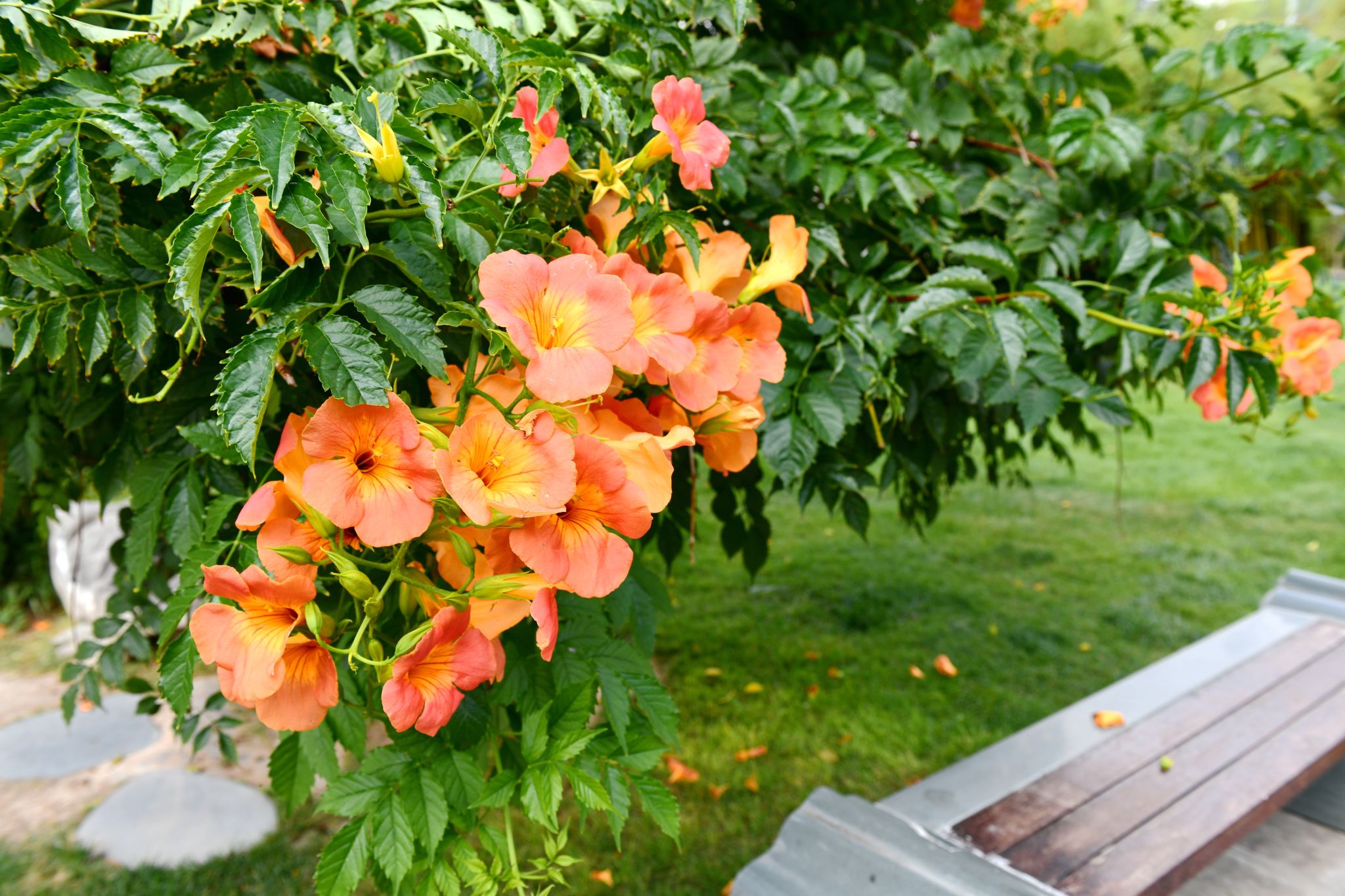 紫薇花含着笑意看着石凳上休憩的情侣,带一丝艳羡,传递幸福长久的花语。