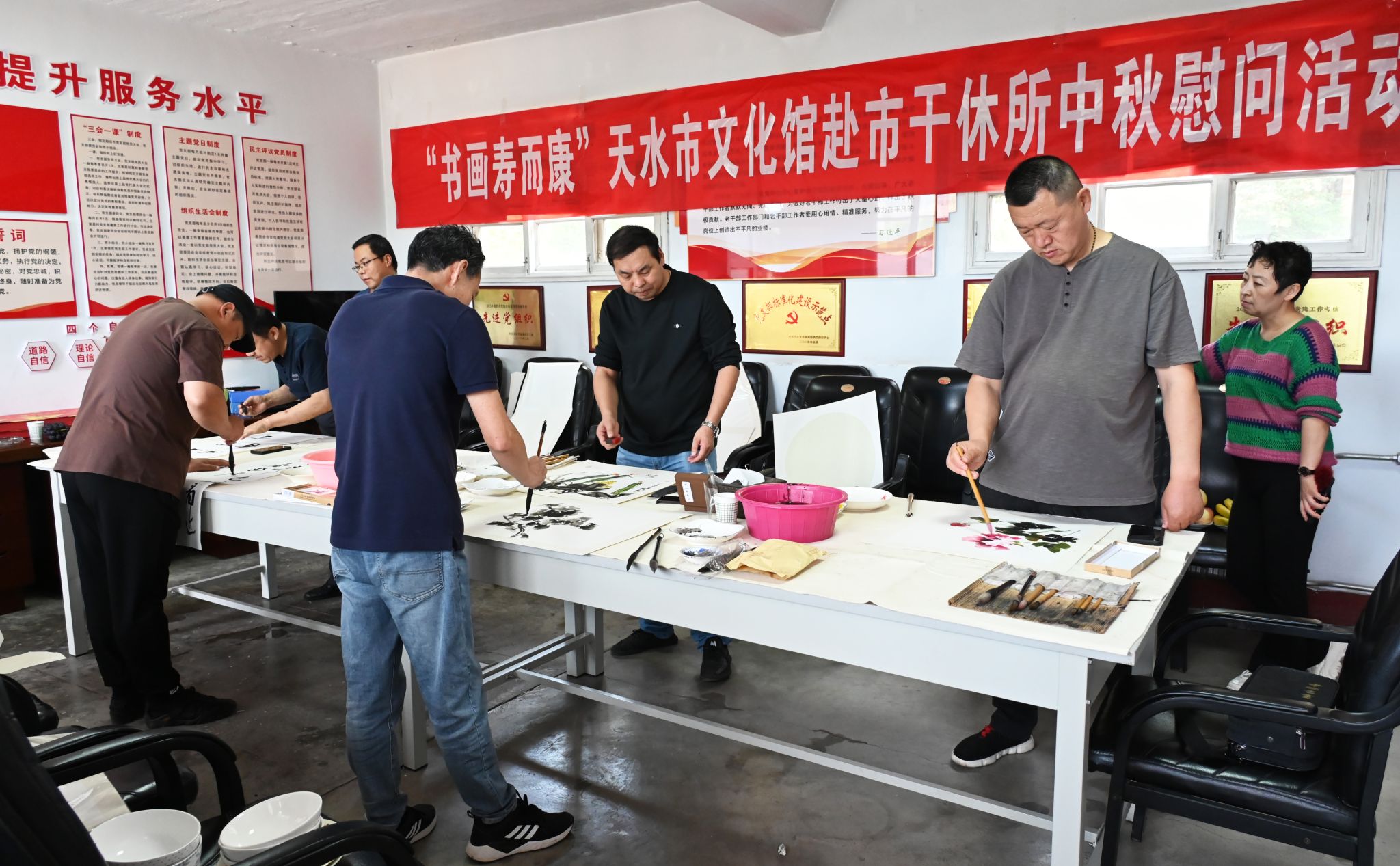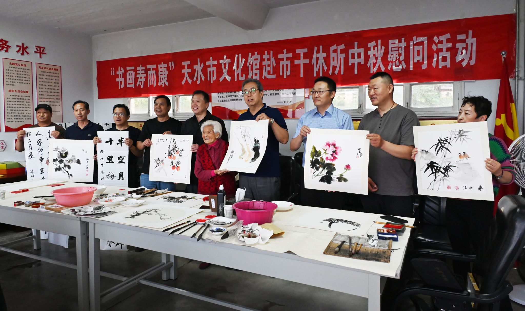 9月11日,在中秋佳节来临之际,为进一步提升文化服务群众的知晓度、参与度和满意度,持续推动“文化四进”工作,天水市文化馆组织馆内书画创作人员前往市干休所开展了“书画寿而康”中秋慰问活动。