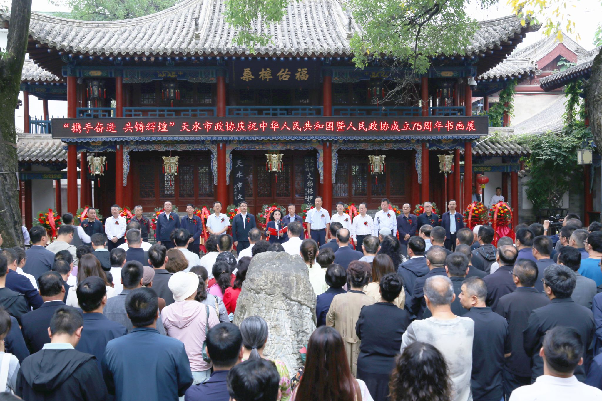七十五载风雨同舟,砥砺奋进;七十五载同心同行,继往开来。天水市政协将以本次书画展为契机,持续深入学习贯彻党的二十届三中全会精神、习近平总书记在庆祝中国人民政治协商会议成立75周年大会上的重要讲话和视察甘肃及天水重要讲话重要指示精神,在中共天水市委的坚强领导下,牢记政治责任,主动担当作为,充分发挥专门协商机构作用,为加快建设中国式现代化幸福美好新天水做出新的更大贡献!