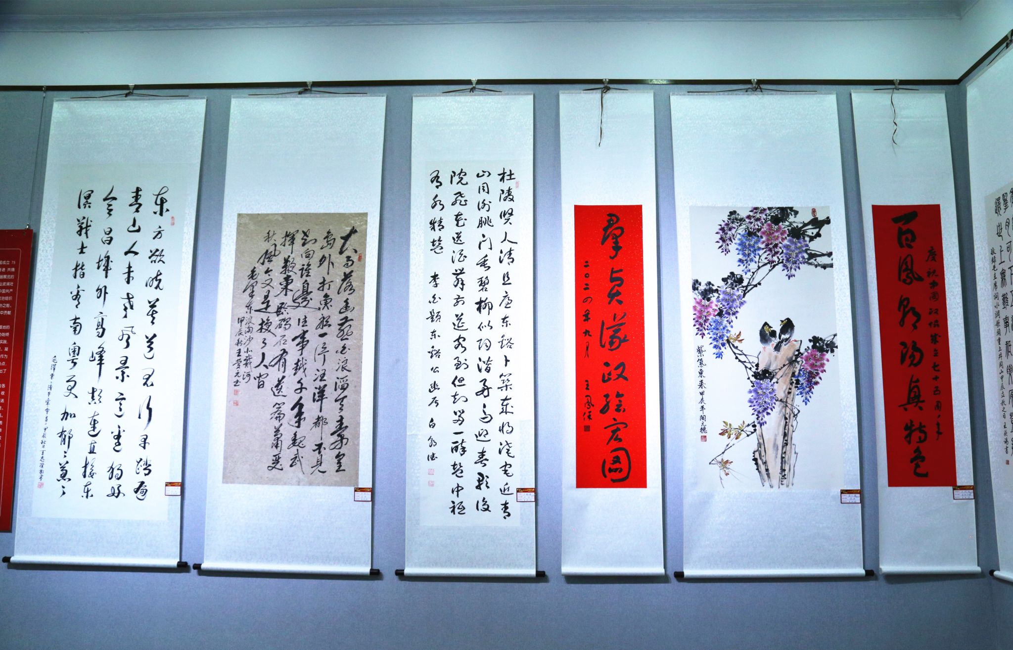 本次书画展是市政协庆祝中华人民共和国和人民政协成立75周年系列活动之一,共展出书法、绘画、篆刻作品151幅。作品内容丰富,主题突出,立意新颖,风格鲜明,或取材于中国共产党的光辉历史,或选题于新中国成立以来人民生活发生的巨大变化,或寄情于大好河山,或畅怀于诗文佳句,不仅是艺术创作的结晶,更是时代精神的写照,展示了新时代人民政协大团结大联合的生动局面和广大政协委员感恩奋进、实干担当的时代风采,表达对新中国和人民政协的无限热爱和美好祝福。