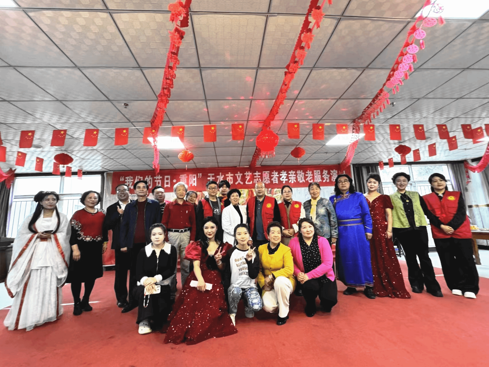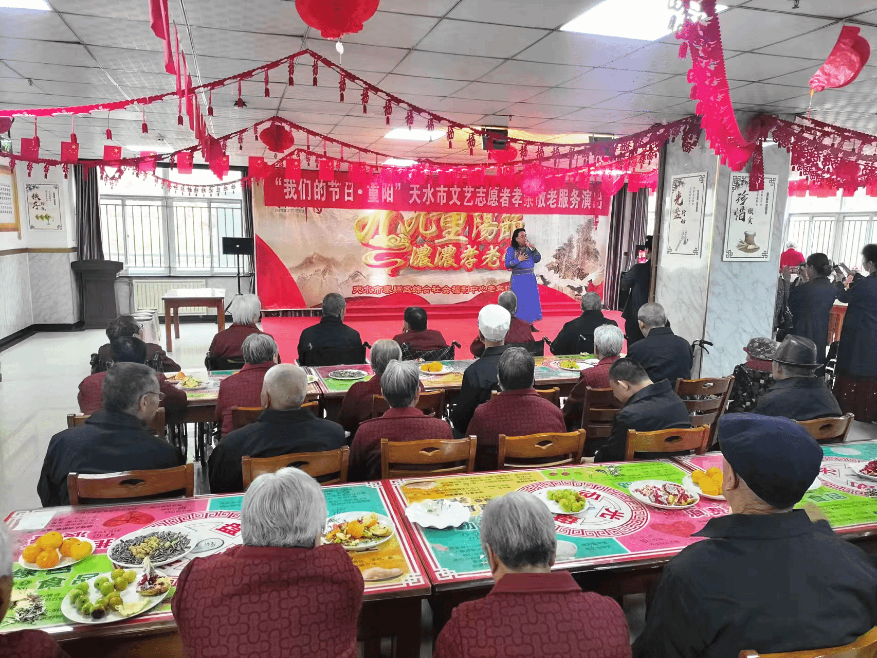 为了深入学习贯彻习近平文化思想,认真贯彻落实习近平总书记关于老龄工作的重要指示精神,以及习近平对甘肃的重要讲话批示精神,大力挖掘传统节日文化内涵,弘扬时代价值和孝亲敬老传统美德,2024年10月11日上午,由天水市文学艺术界联合会主办,天水市音乐家协会、舞蹈家协会、戏剧家协会、曲艺家协会,以及天水市文化馆、天骄艺术团、天水市秦州区社会福利院共同承办的“我们的节日·重阳”天水文艺志愿者孝亲敬老服务演出活动,在天水市秦州区综合社会福利中心老年护理院举办。