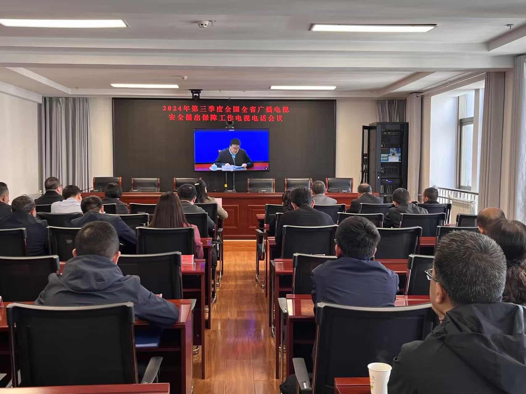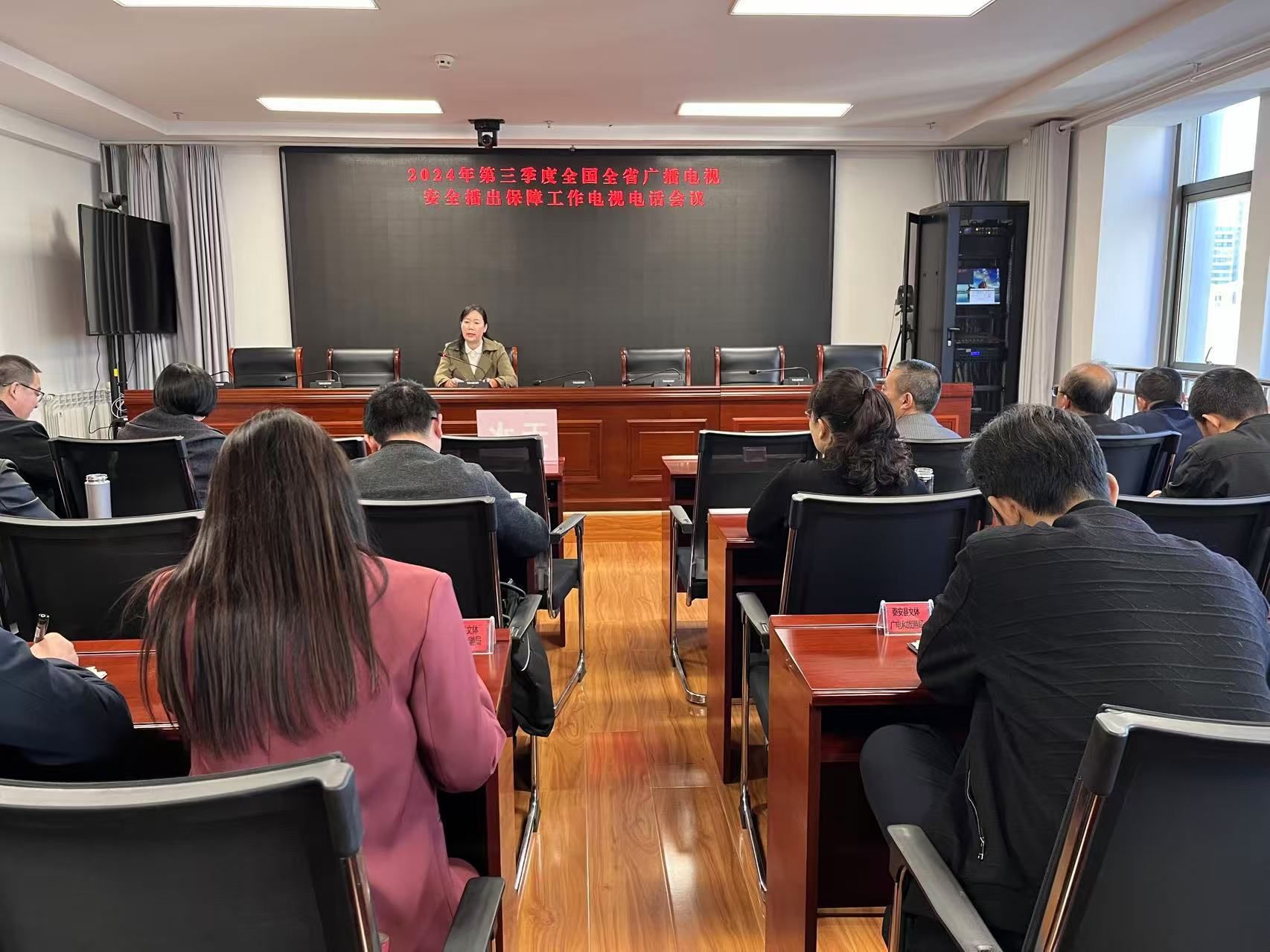10月22日第三季度全国全省广播电视安全播出保障工作电视电话会议后,天水市文旅局召开会议,贯彻落实全国全省会议精神安排部署全市广播电视安全保障工作,副局长王亚梅主持并讲话。