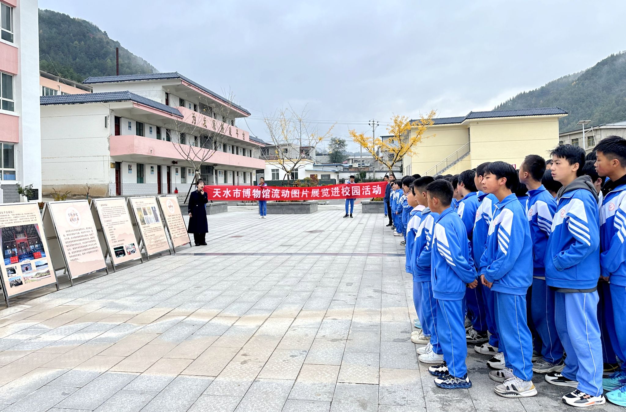 历史铸就文化魂,传承照亮前行路。为进一步弘扬中华优秀传统文化,增强青少年对家乡历史文化的认同感与自豪感,促进文化教育与素质教育的深度融合,近日,天水市博物馆流动展览分别走进秦州区娘娘坝中学、天水镇中学、太京镇中学等学校,为广大青少年带来了一场视觉与心灵的文化盛宴。