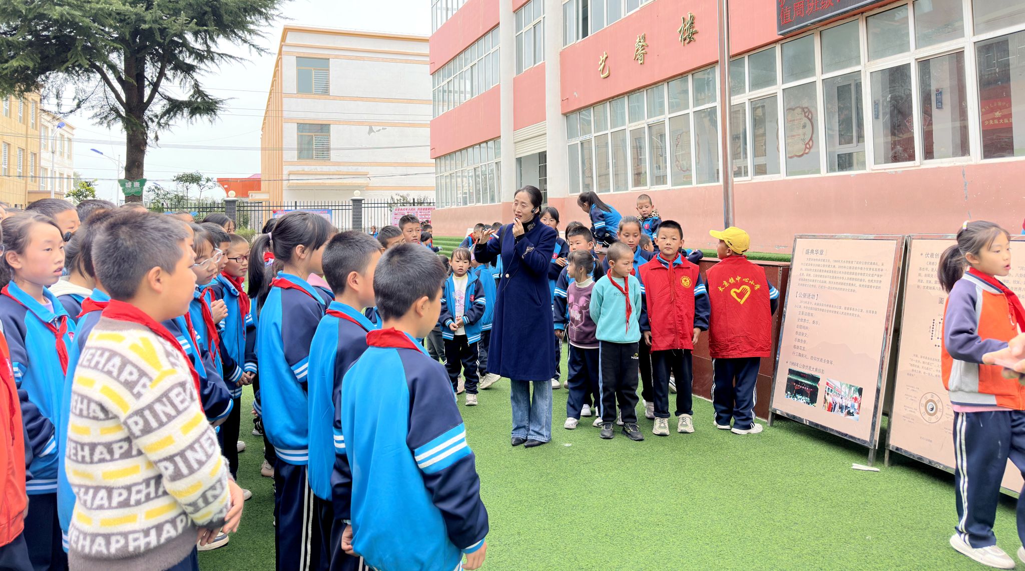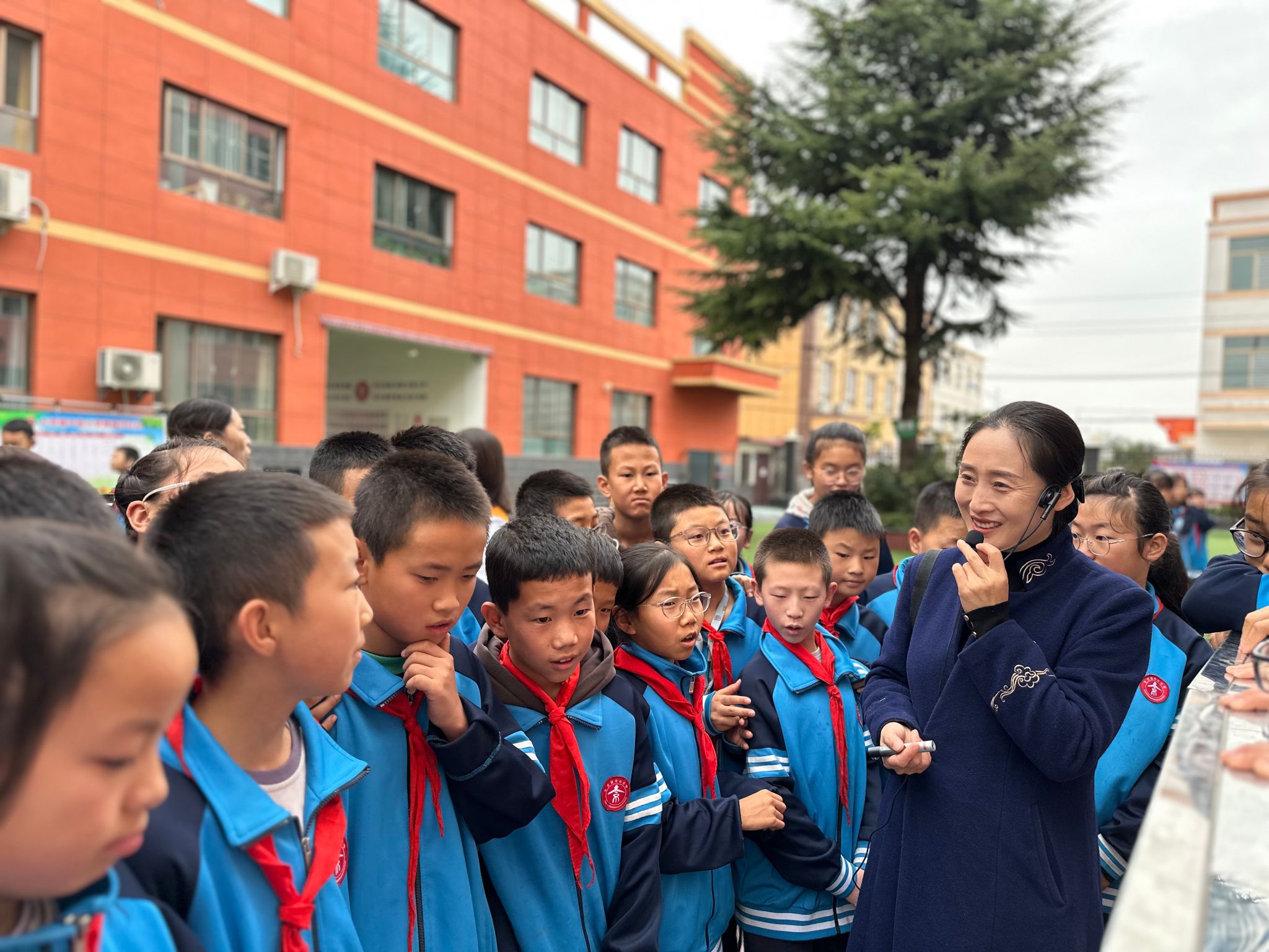 活动现场,整齐摆放在教学楼广场上的一块块满载知识的展板,让孩子们热情高涨,兴奋与好奇写满稚嫩的脸庞,大家仔细的观看着每一块展板上丰富的文化知识和精美的文物图片,表现出对于课外知识的热情。宣教人员以太昊伏羲祭典的保护与传承和馆藏文物为核心内容,用通俗易懂的语言进行了详细讲解,真正让文物“活”起来,并与孩子们进行互动提问回答,大家被天水悠久灿烂的历史文化震撼着,此刻,他们从耐心听讲变成了主动参与,与宣教人员共同上了一堂形式特别、印象深刻的“历史课”。活动结束后,师生们纷纷表示,希望今后能有更多的机会参与这样的活动,接受传统文化的浸润,厚植文化自信与家国情怀!