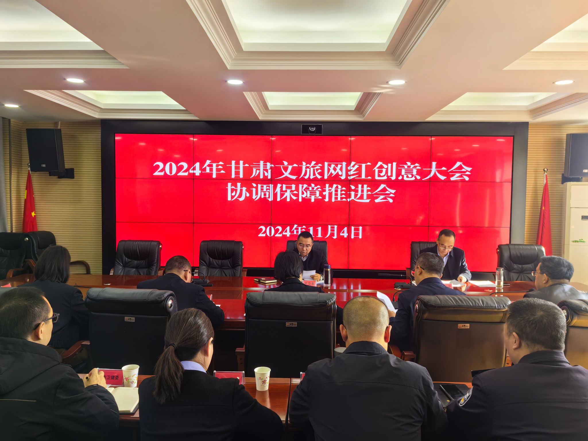 为全力保障“2024年甘肃文旅网红创意大会”成功举办,2024年11月4日上午,天水市组织召开2024年甘肃文旅网红创意大会协调保障推进会,市委常委、宣传部部长王文东主持会议并讲话,市文旅局负责人宣读了《2024年甘肃文旅网红创意大会协调保障方案》,秦州区、麦积区、甘谷县、武山县和麦积山大景区管委会就工作进展情况进行了汇报。