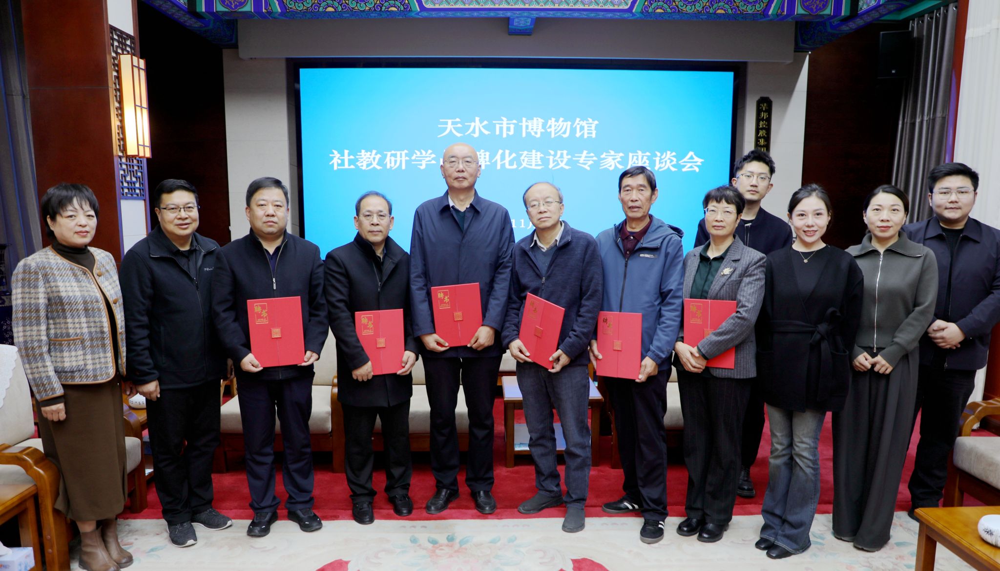 会议聘请了11名专家作为天水市博物馆和壹佰仟研学旅行有限公司联合开发研学课程的高级顾问,并颁发了聘书。