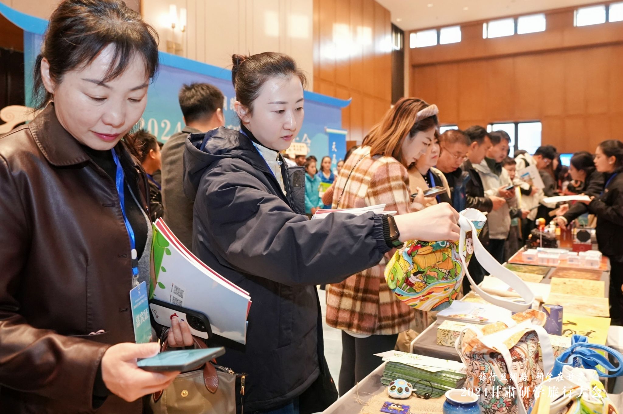 会上,何效祖全方位、多角度推介了甘肃研学旅行资源,展示了甘肃研学旅行成果,展望了甘肃研学旅行发展未来,为现场嘉宾勾勒出了一幅融长河落日、冰川雪山、大漠戈壁、秀美山河于一体的壮美甘肃画卷。天水麦积山、伏羲庙、大地湾等历史文化古迹,天水麻辣烫、花牛苹果、秦安蜜桃等特产美食也借此精彩亮相,受到会场众多研学机构代表广泛赞誉。同时,天水特色研学课程及文创产品也在会场进行了充分展示,特别是大地湾主题笔筒、麦积山主题帆布包等产品受到与会领导的青睐,大地湾主题手机壳、抱枕、钥匙扣以及伏羲庙主题布偶挂件等也引起广大参会嘉宾浓厚兴趣,几乎被抢购一空。