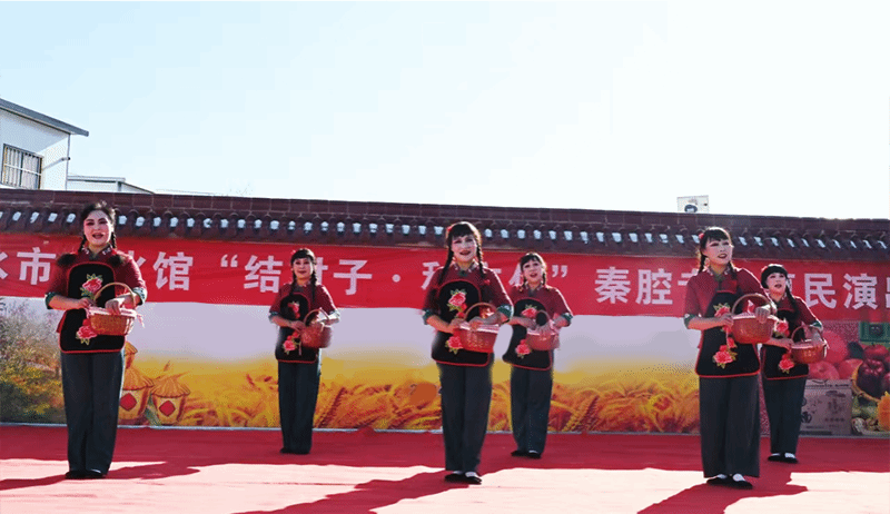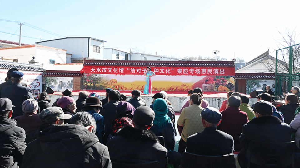 天水市文化馆秦腔艺术团为当地群众演出了秦腔折子戏《梁秋燕》《祝福》《盼子》《周仁回府》《三击掌》《藏舟》《游花园·表花》《洪湖赤卫队》《红灯记》等16个经典剧目选段。台上演员唱念做打样样精通,表演配合默契、剧情引人入胜,赢得了现场群众的阵阵喝彩。演出既丰富了农村群众文化生活,又推进了乡村旅游发展,让近千名群众在家门口过足了戏瘾。