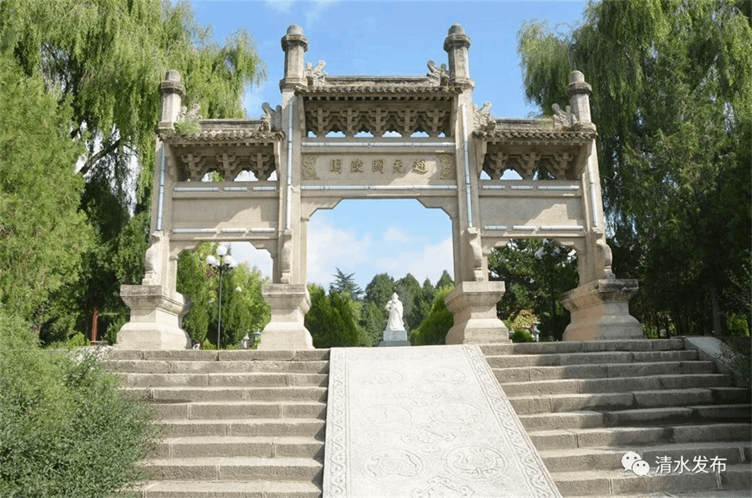 【赵充国陵园】位于清水县城,修建于汉代。主要包括赵充国墓区、宋金墓葬群博物馆、碑林区。赵充国墓冢高3.8米,底径10米,冢前左右树立遗存碑亭两座,内立清嘉庆年间“汉后将军营平侯之墓”和清光绪乙酉年“汉故将军营平侯之墓”的石碑两通,是重点文物保护单位。