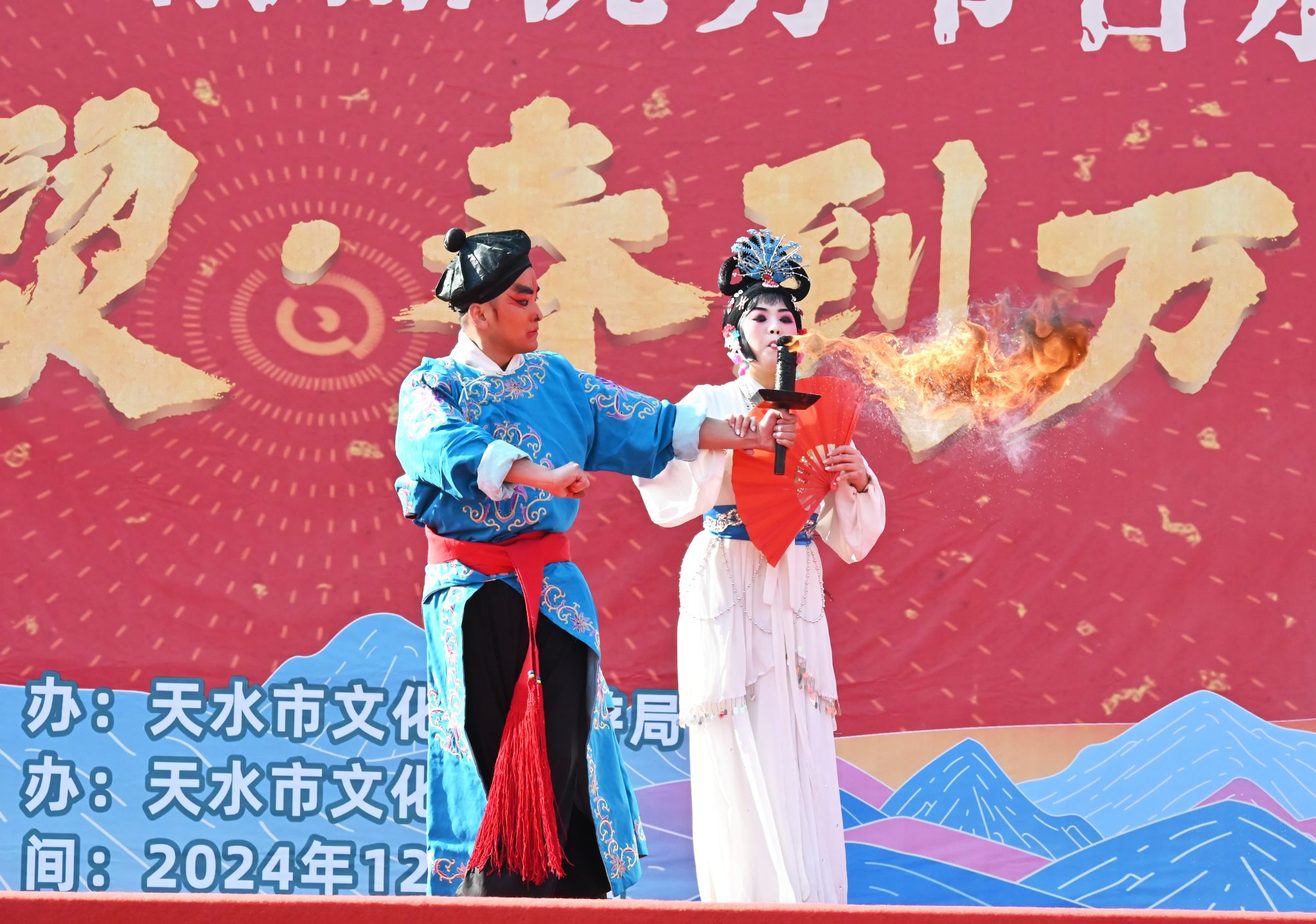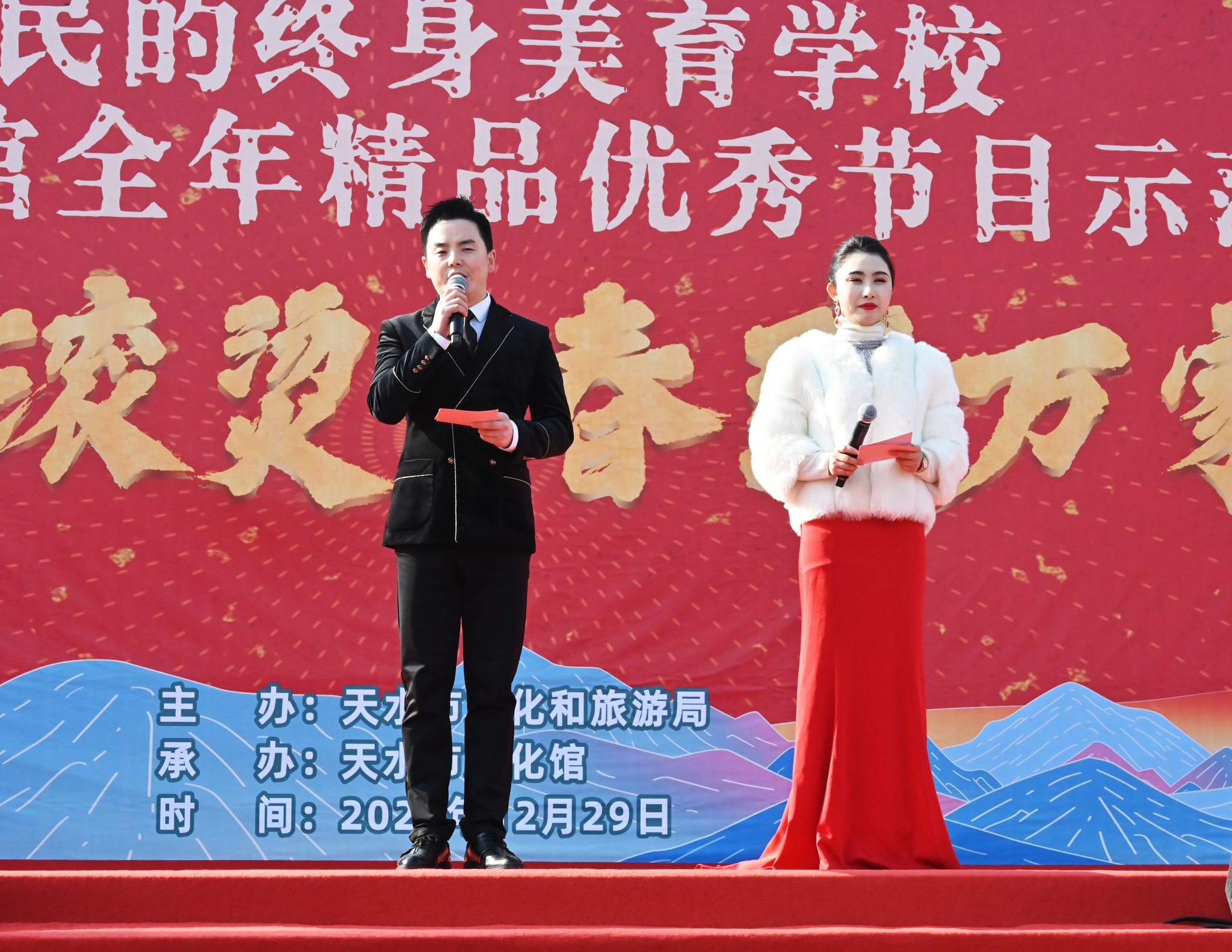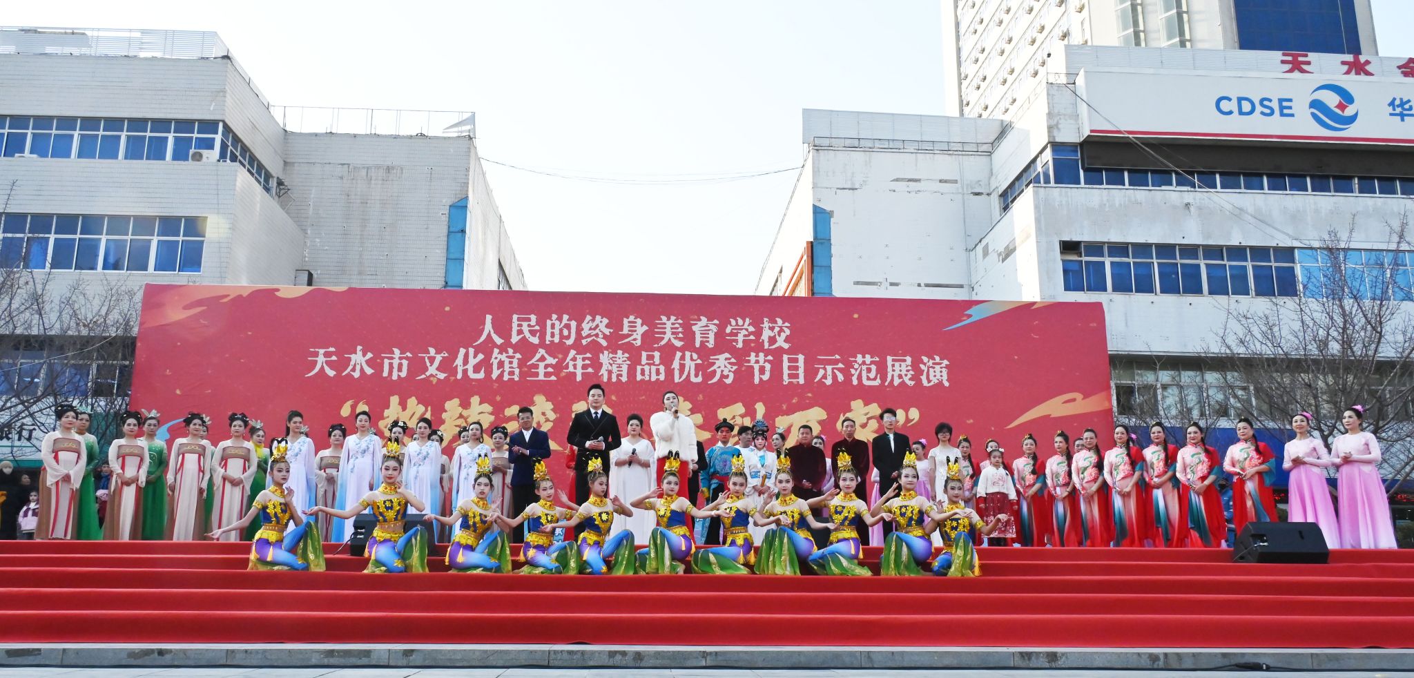 12月29日,在元旦佳节来临之际,为深入贯彻落实党的二十大精神和习近平文化思想,进一步丰富广大群众的文化生活,由天水市文化和旅游局主办,天水市文化馆承办的“热辣滚烫·春到万家”人民的终身美育学校天水市文化馆全年精品优秀节目示范展演在天水市龙城广场成功举办。