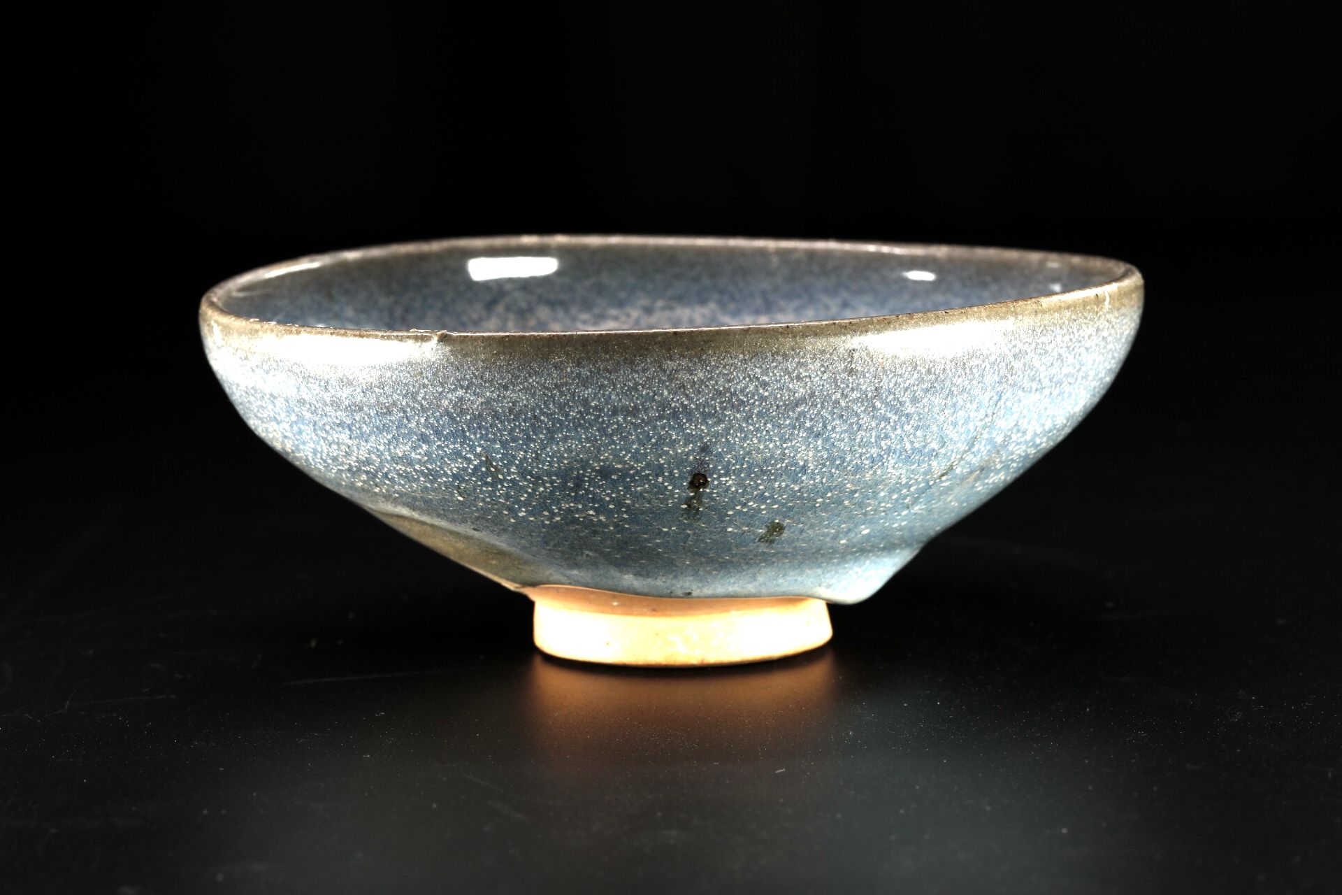 钧窑是我国北方著名的瓷窑,位于河南禹州市,以其独特的釉色和窑变艺术而闻名,钧窑创烧于北宋初年,元朝时继续在北方发展。钧窑瓷碗是元代人们日常生活的主要器物之一,造型多样,有敛口、弧腹、近口处微收等特点,圈足不施釉。整体器型规整,胎体厚重。釉色以天青或天蓝为主。釉色鲜艳,釉面光亮,釉质乳浊有玉质感,部分器物有窑变色。钧瓷最初的烧制方法是柴烧,用匣钵装烧,垫有垫饼,在还原气氛下经1280度左右烧成。钧瓷以窑变著称,窑变效果变化万千,具有鲜明的特色及强烈的艺术感染力。钧瓷碗以其独特的造型、釉色工艺特点和重要的艺术价值,成为中国传统陶瓷艺术中的瑰宝。