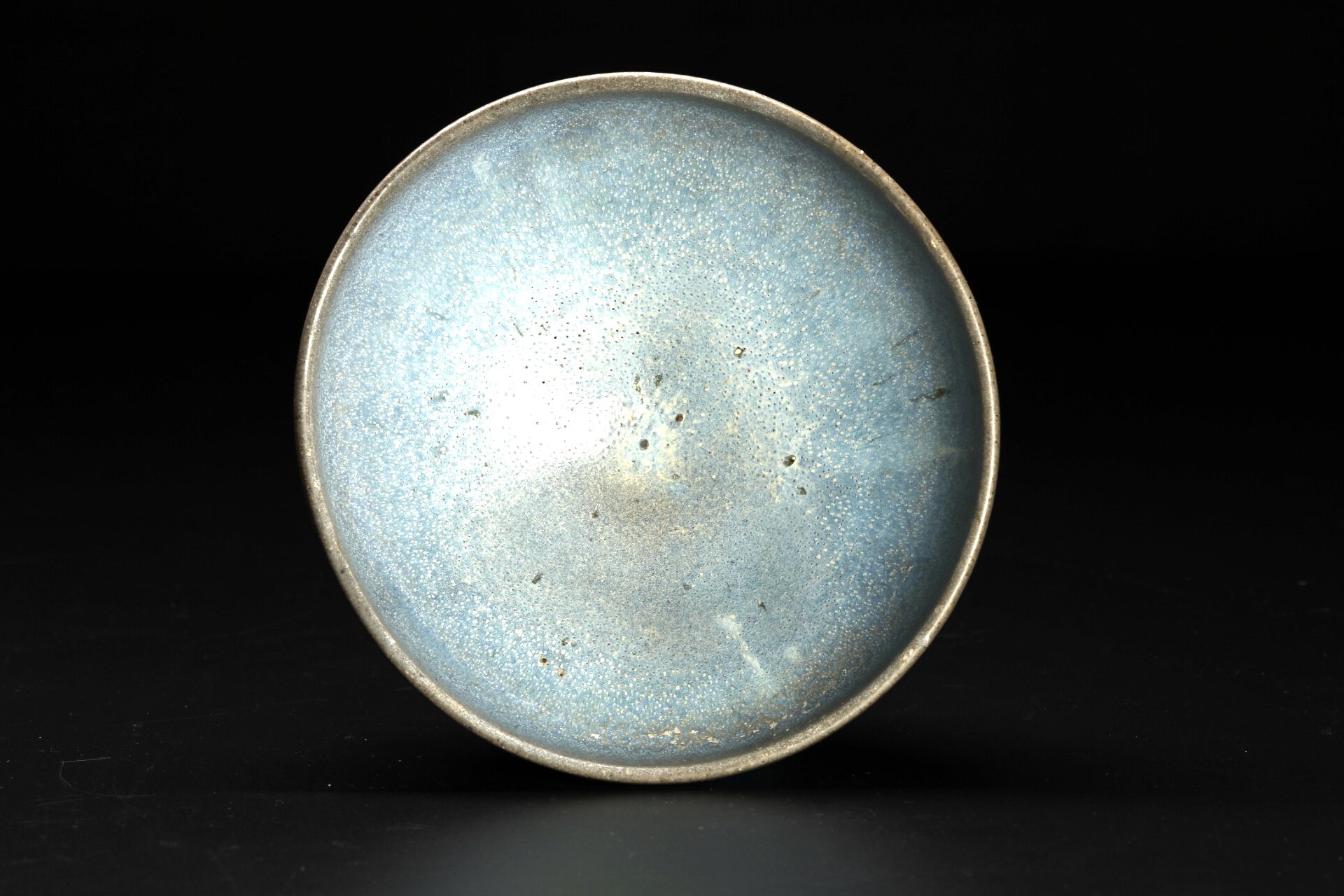 钧瓷的釉色华丽夺目,有玫瑰紫、海棠红、茄子紫、天蓝、月白等多种色彩,这些色彩相互交融,形成了钧瓷独有的艺术魅力。其中天青釉钧瓷碗备受推崇。天青色乳浊釉肥润而透亮,釉下隐约可见细丝状紫褐条纹,与天青色相互映衬,犹如雨后彩虹绚丽灿烂。天青釉钧瓷碗的制作工艺极为复杂,需经过多次烧制和精细的釉色调配,才能呈现出如此美妙的色彩和质感。