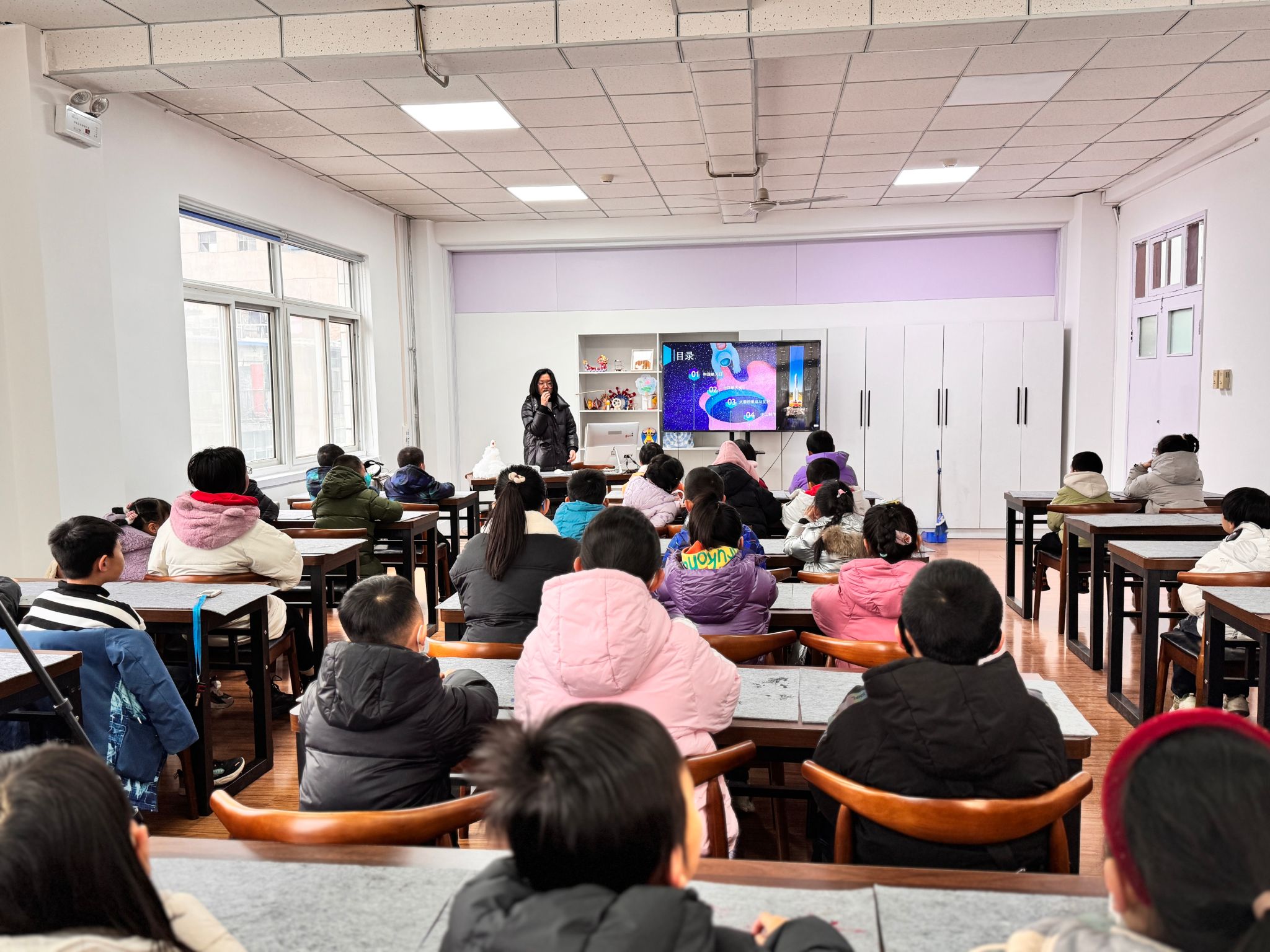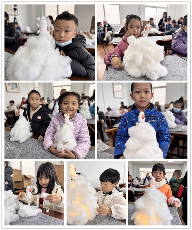 本次科普活动现场,志愿者周老师为小读者们讲授了中国航天史,火箭的组成部分、发射场地等知识。充分提升了孩子们的科学素养。小朋友们聚精会神,充分学习了火箭发射知识。手工环节,孩子们和各位老师齐心协力,制作了一个个火箭小夜灯。孩子们开心的向大家展示了自己制作的火箭小夜灯,享受着科学带来的乐趣。活动最后,大家纷纷拍照留念。