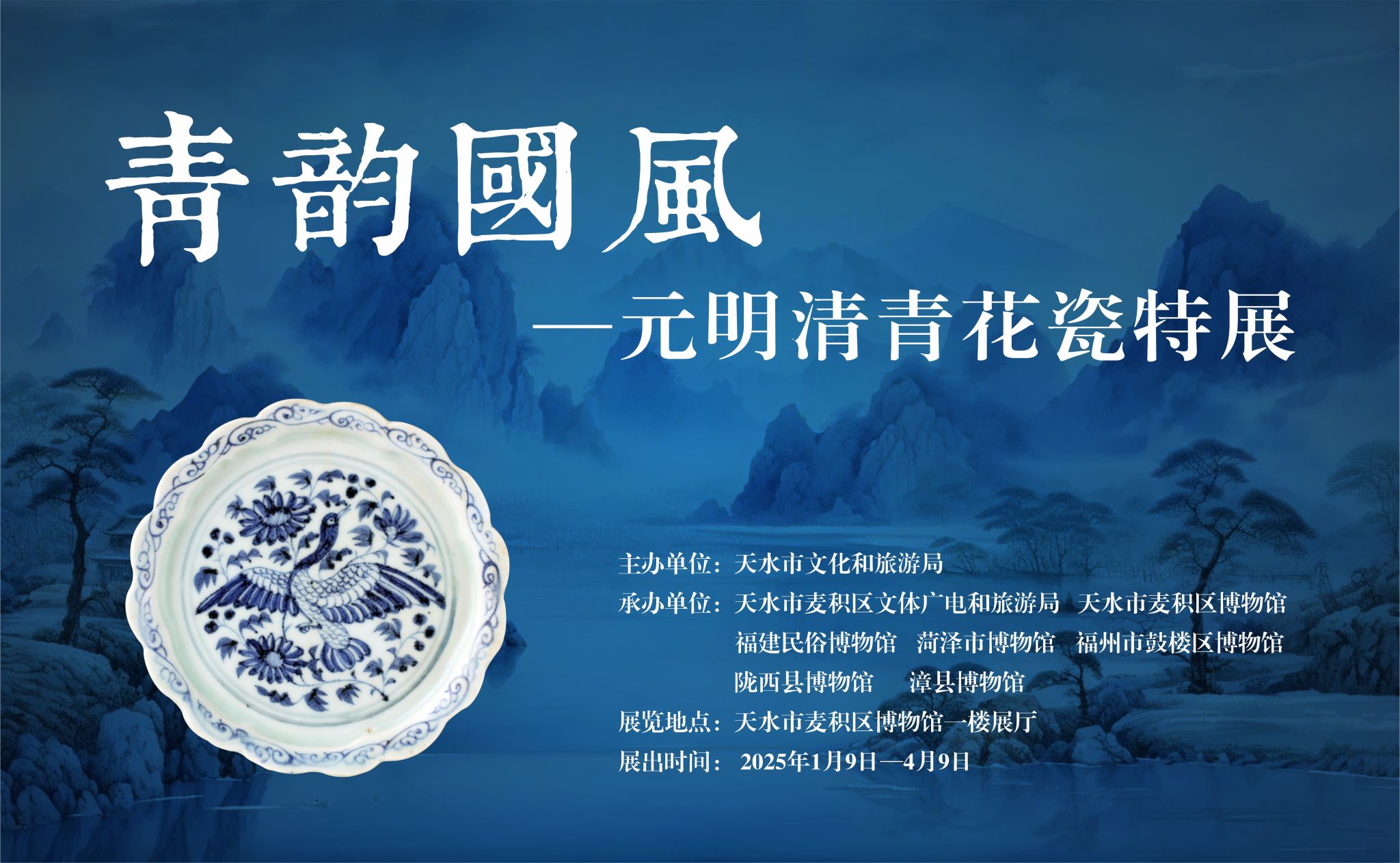 天水市麦积区博物馆联合福建民俗博物馆、菏泽市博物馆、福州市鼓楼区博物馆、陇西县博物馆、漳县博物馆推出“青韵国风——元明清青花瓷特展”