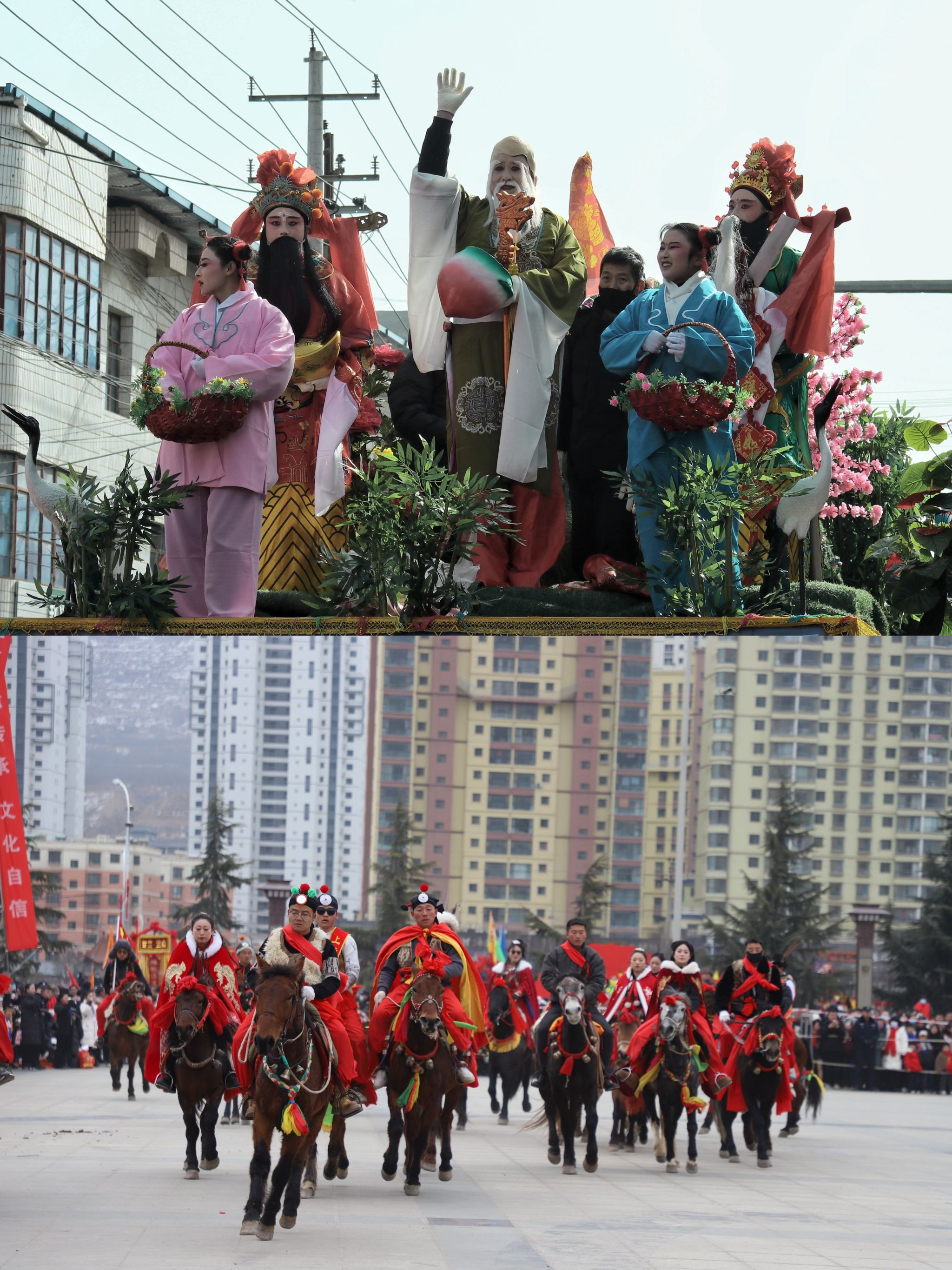 半城锣鼓一城人,社火满街争闹春。各色花车、舞龙舞狮、踩高跷、跑旱船、扭秧歌,各县区春节社火争相上演,展现了西北大地“不耍社火不成年”的民俗传统,表达着人们祈求风调雨顺、五谷丰登的朴素愿望。秦州区“龙腾狮跃贺新春·祈福纳祥迎新年”舞龙舞狮主题文化活动和春节民间民俗艺术汇演、麦积区“芳华盛起·锦绣麦积”民间民俗艺术展演、秦安县“乙巳呈祥·金蛇献瑞”春节群众社火汇演、清水县“青山绿水·只此清水”社火展演、“非遗过大年”武山县城乡秧歌社火汇演以及各大乡镇组织的社火专场展演活动,将天水的年味推向高潮。伴随着响亮的锣鼓声,人们身着艳丽的服装,手拿各式道具,载歌载舞,呈现出一派喜庆祥和的温馨画面。