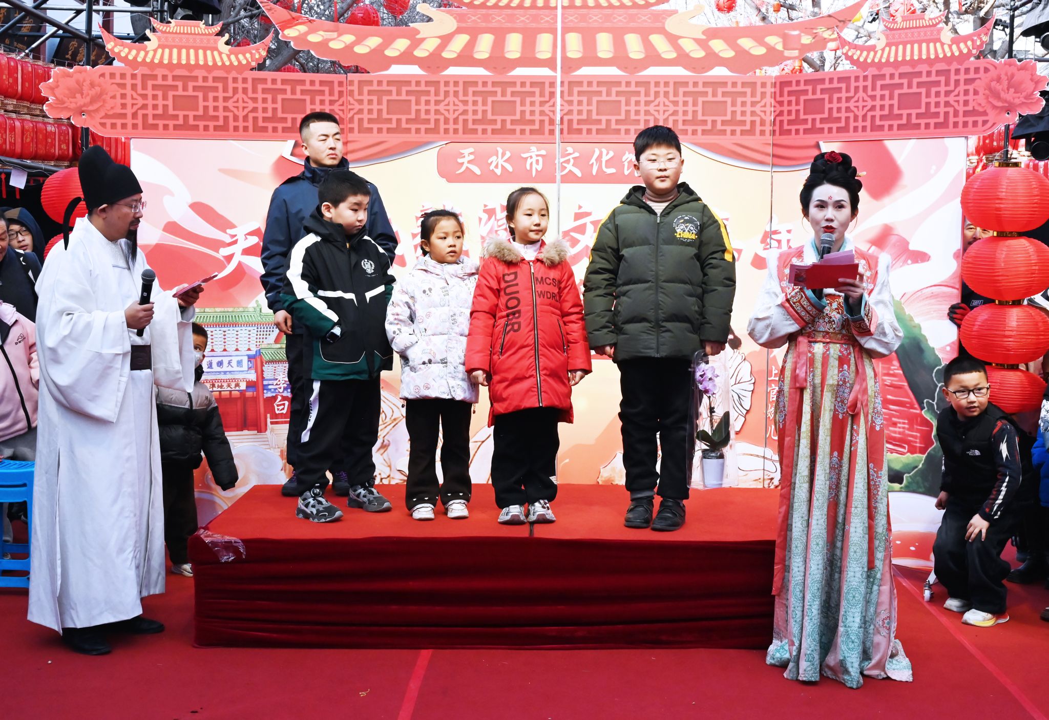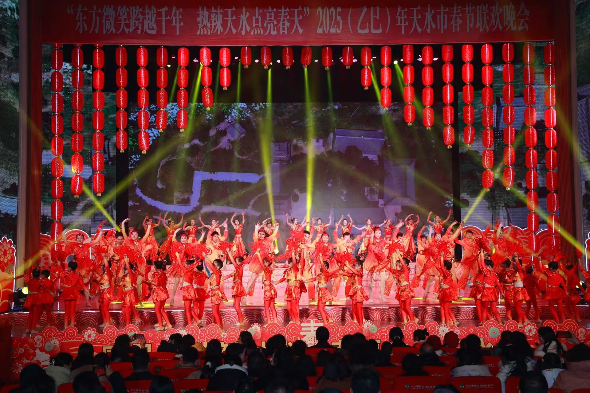 2025年春节是“春节——中国人庆祝传统新年的社会实践”列入联合国教科文组织人类非物质文化遗产代表作名录后的首个春节。天水市各级文旅部门积极策划,专题晚会多点开花,“东方微笑跨越千年·热辣天水点亮春天”——2025(乙巳)年天水市春节联欢晚会、“感恩奋进新时代·幸福美好秦州年”秦州区迎新春文艺晚会、“芳华盛起·锦绣麦积”2025年迎春文艺晚会、“福满成纪·巳巳如意贺新年”秦安县2025年迎新春文艺晚会、“歌舞盛世·醉美甘谷”2025年甘谷县春节联欢晚会、“金蛇舞盛世·福满渭川城”武山县春节文艺晚会、“金蛇起舞贺新春·砥砺奋进谱新篇”2025年清水县春节联欢晚会、“金蛇迎春送安康·砥砺奋进新时代”张家川县2025年春节文艺晚会等专题晚会在各大剧场轮番上演,为全市人民献上了一场场充满温情与欢乐的新春文化盛宴。同时,以少儿为核心打造的文艺盛宴成为今年春节的一大亮点。“逐梦龙城天水市少儿电视春晚”“2025年天水市第八届少儿春晚”双星闪耀,汇聚全市2000余名青少年,通过歌舞、戏曲、朗诵等形式展现新时代少年风采。市民张女士在社交平台分享:“孩子第一次登台表演秦腔选段,全家守在电视前为他加油,这样的活动让春节更有意义!”