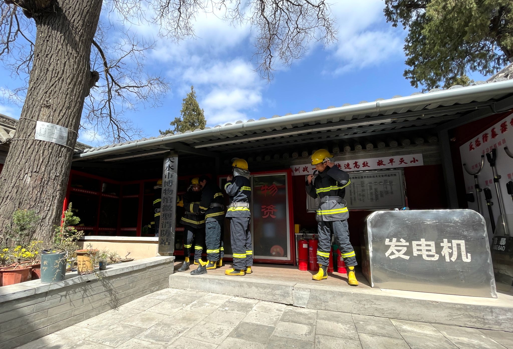 (一)实地操作演练在博物馆外的空旷场地设置了模拟火灾场景,组织队员们进行灭火器、消火栓的实际操作使用训练。队员们分组进行练习,严格按照操作规程进行灭火作业,切实提高了实际灭火能力。同时开展疏散演练,模拟发生火灾时人员紧急疏散的情况。队员们按照预定的疏散方案,迅速组织观众有序疏散,确保疏散过程的安全有序。