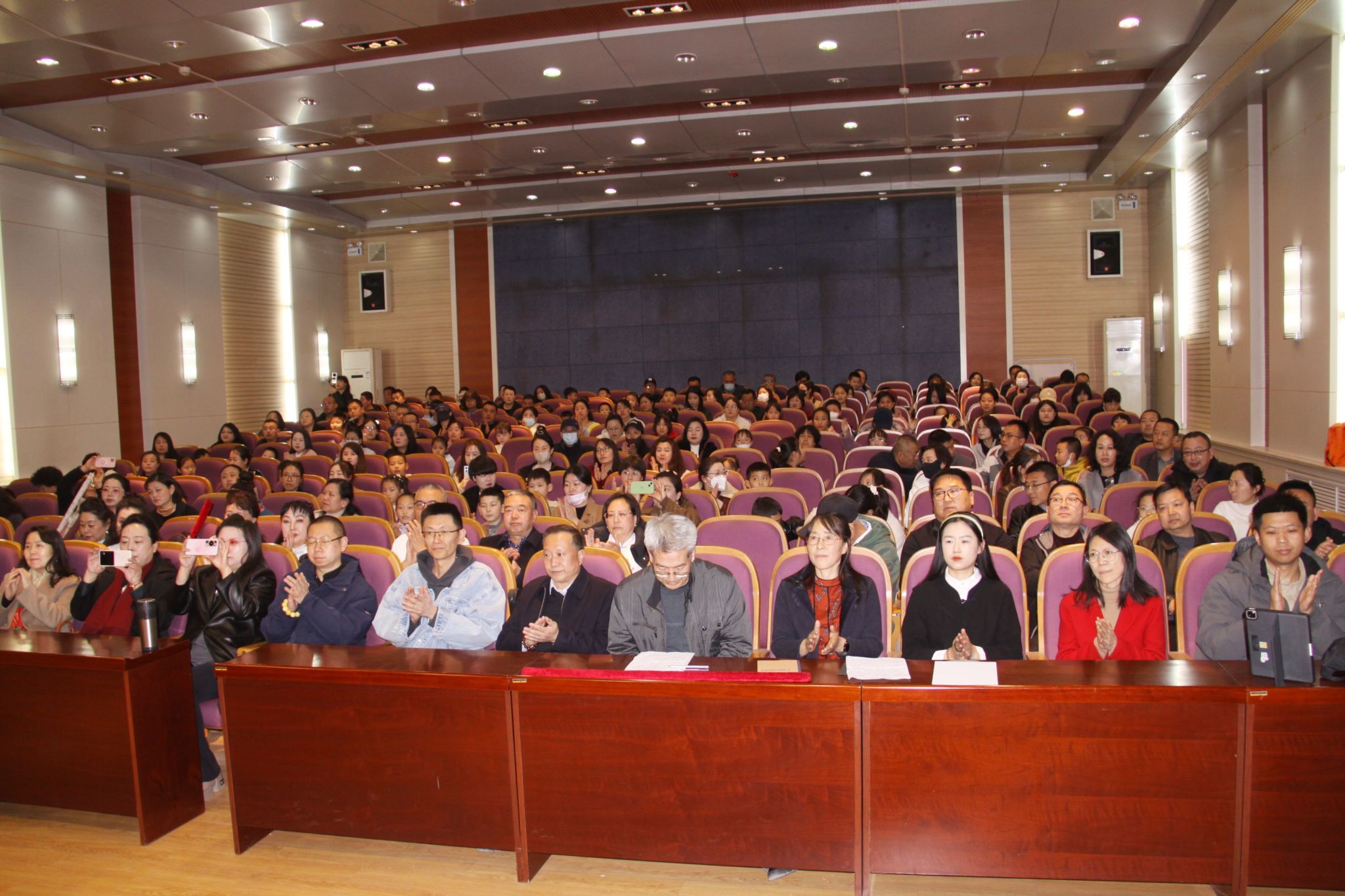 活动当天,报告厅内琴韵悠扬、座无虚席,讲座现场,古韵与智慧交织,琴声与掌声共鸣。王东霄先生以深厚的学识娓娓道来,从古琴的历史渊源到文化内涵,从琴曲的意境到演奏的技巧,深入浅出的讲解在《穿越时空的思念》和《梅花三弄》的琴音配合下,令观众无不沉醉其中。讲座尾声,天和之声琴箫会馆的老师们分别带来琴箫合奏《平沙落雁》、弦歌唱《关山月》《女儿情》、箫埙合奏《故土》,现场气氛热烈而温馨。最后,讲座在终场曲《远风》的悠扬箫声中圆满落下帷幕。