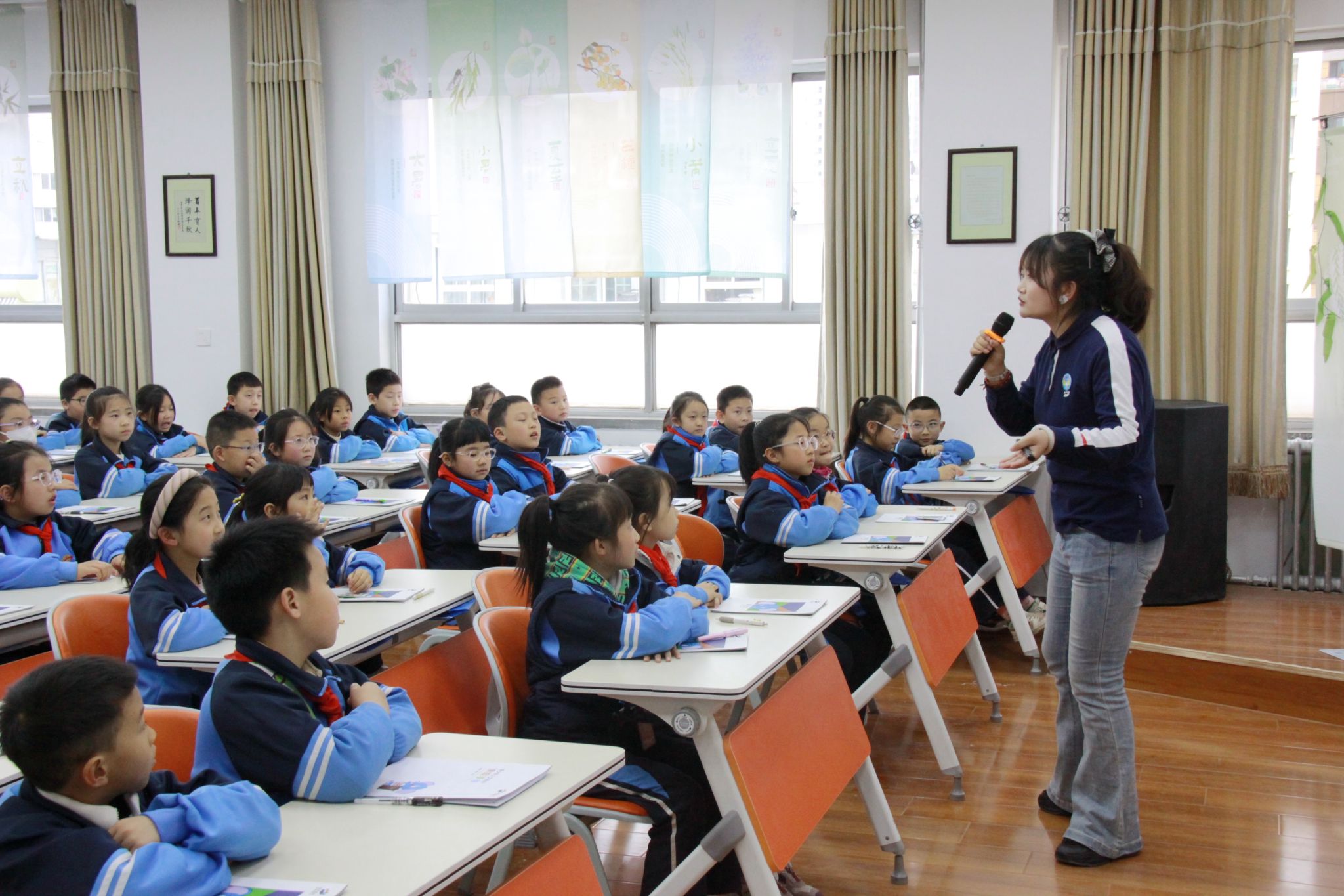 活动以握手礼仪的知识小课堂拉开帷幕。老师用简单易懂的故事,为孩子们介绍了清明节的由来、传统习俗和文化内涵。从介子推的传说到扫墓祭祖、踏青、吃青团、放风筝的习俗,孩子们听得津津有味,一双双明亮的眼睛里满是好奇与专注。互动提问环节,同学们积极参与、热情高涨,课堂氛围生动有趣。