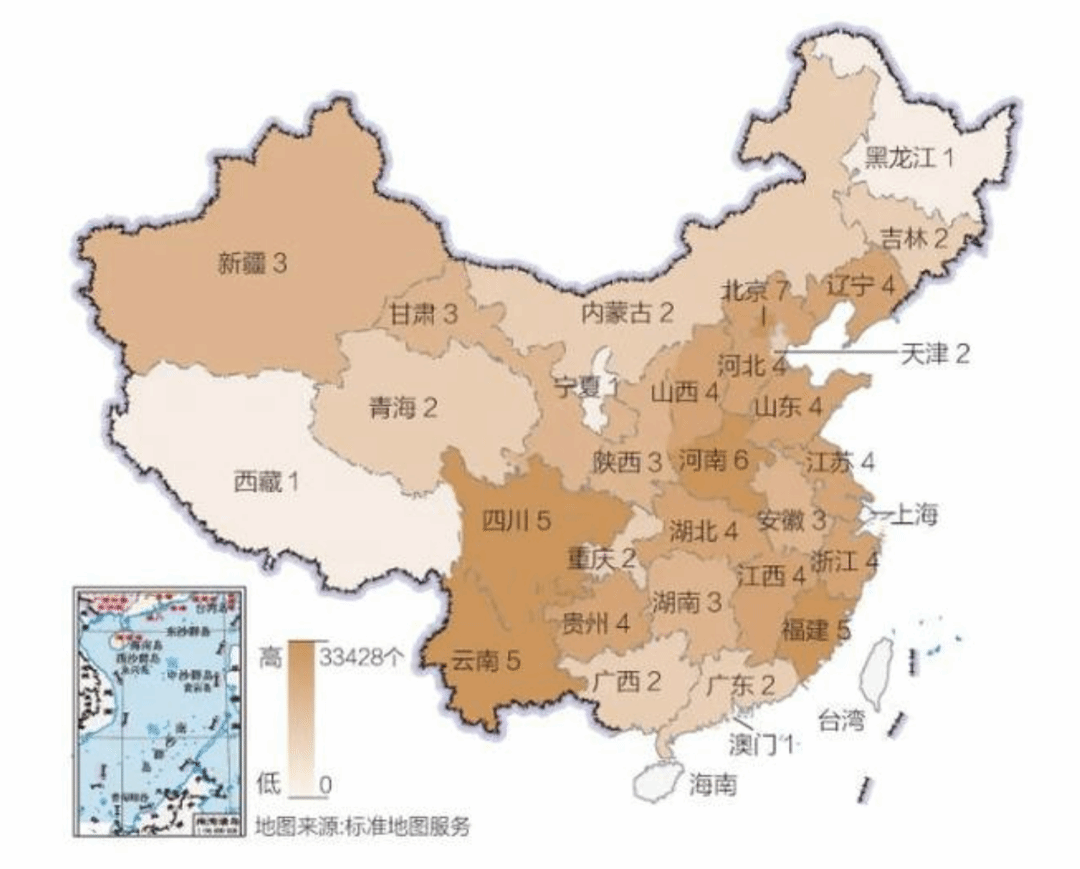 中国的文化遗产分布图
