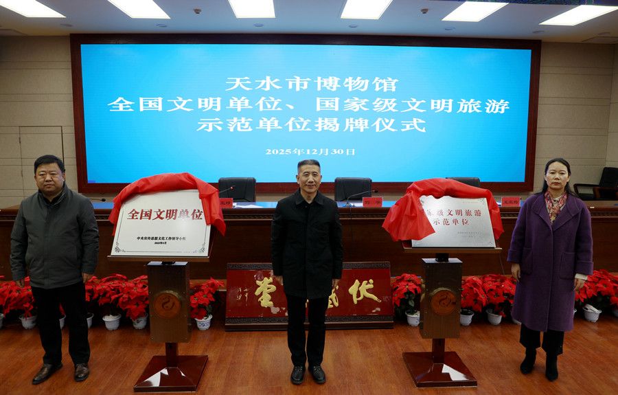 仪式上,刘宇宣读了中央宣传思想文化工作领导小组的认定命名决定,对天水市博物馆在精神文明建设方面取得的成绩给予高度评价,并就下一步深化文明创建工作提出希望和要求。随后,举行了揭牌仪式,标志着天水市博物馆在精神文明建设与文旅服务品质提升方面迈上了新的台阶。