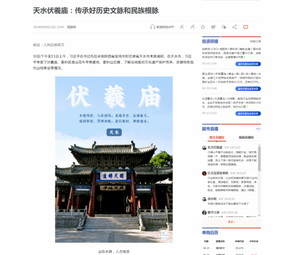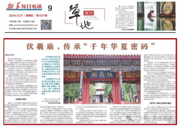 《天水伏羲庙:传承好历史文脉和民族根脉》《伏羲庙,传承“千年华夏密码”》在人民日报、新华社、央视等主流媒体刊发