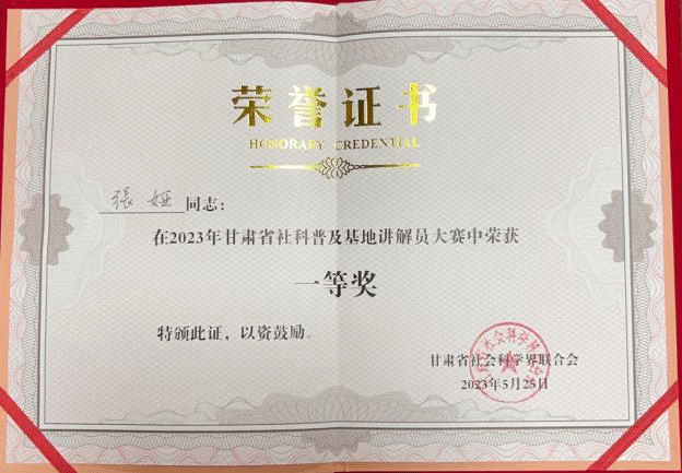 甘肃省社科普及基地讲解员大赛一等奖