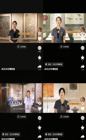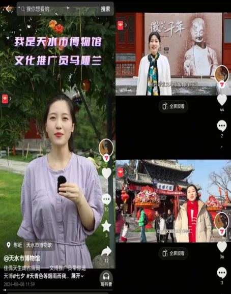这五年,我们积极创新宣传方式,持续扩大文化影响力。官网、微博、微信公众号发布信息6200余条,浏览量360余万人次,抖音、快手等视频号发布信息1500余条,浏览量 1250余万人次。向市级以上单位和部门报送信息1100余条,向省级以上单位和部门报送信息780余条,转载620余条。打造全新官方网站、推出“云展览”及线上“伏羲文化研究”“专家说”等专题栏目,构建立体化数字传播矩阵。“文物赋彩二十四节气”系列海报成为文化传播亮点;《天水伏羲庙:传承好历史文脉和民族根脉》《伏羲庙,传承“千年华夏密码”》等多篇深度报道在《人民日报》、新华社、央视等主流媒体刊发,引发全国关注。大力推进新媒体融合传播,打造数字人讲解、“文博推广员带你游天博”“周周讲文物”等系列互动栏目,成功推动天水市博物馆在抖音、微博等平台实现有效破圈。其中《唐侍女陶俑(天水话版)》入选2024年甘肃文物全媒体传播精品项目,《凌霄花开》荣获全市短视频大赛优秀奖,文化传播效果与社会影响力显著提升。“抱朴怀素·静和美中瓷器科技保护展”各大平台点击量达738.52万人次。