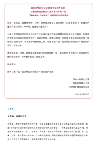 伏羲庙唐槐与古柏成功入选首批“国保单位·古树名木”协同保护名录