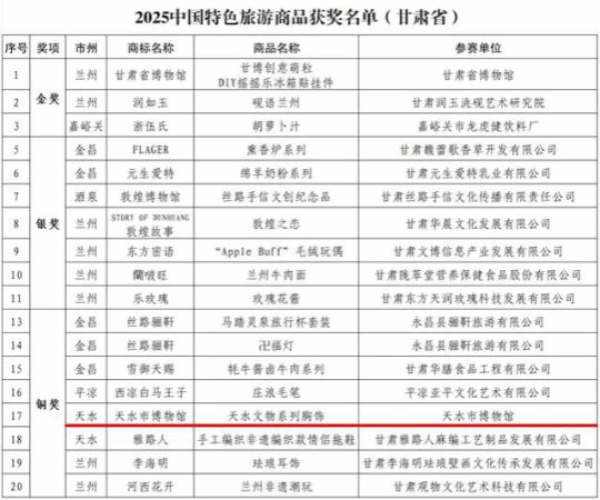 天水文物系列胸饰更在2025中国特色旅游商品大赛中斩获铜奖