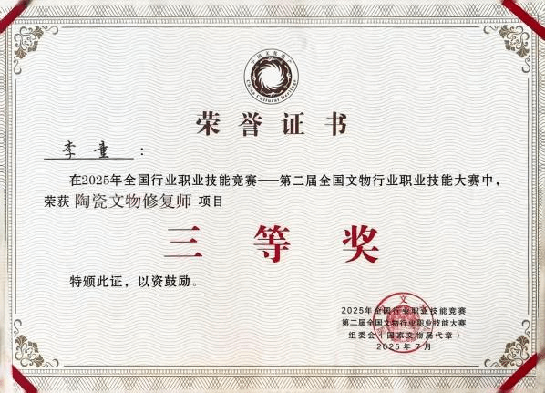 第二届全国文物行业职业技能大赛陶瓷文物修复三等奖