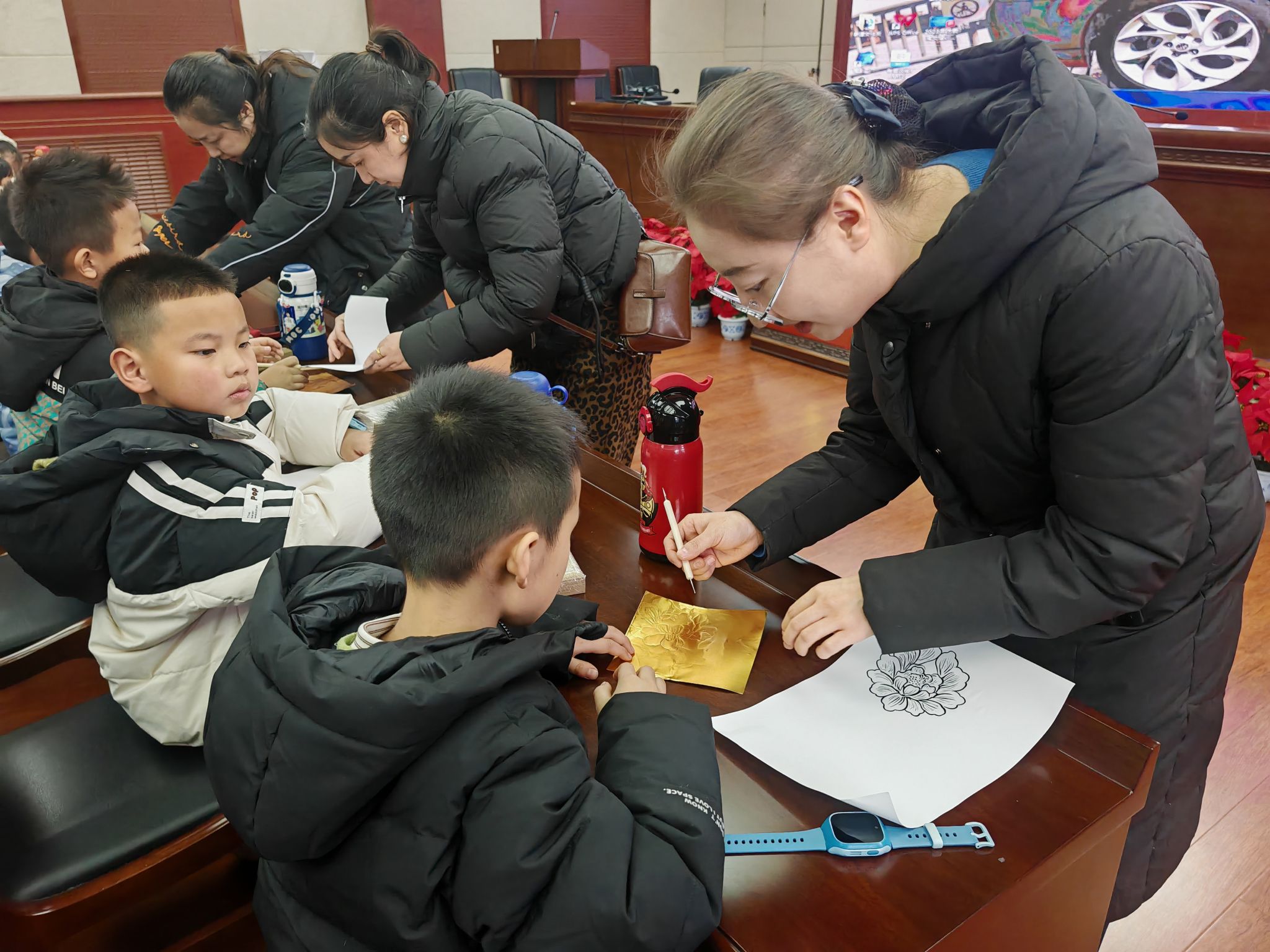 手工体验环节将活动推向高潮。青少年们化身“小小工艺传承人”,手持錾子与锡纸专注复刻经典纹样。沉浸式的实践体验,不仅让大家直观感受传统工艺魅力,更在一錾一刻中体悟“工匠精神”的深刻内涵。