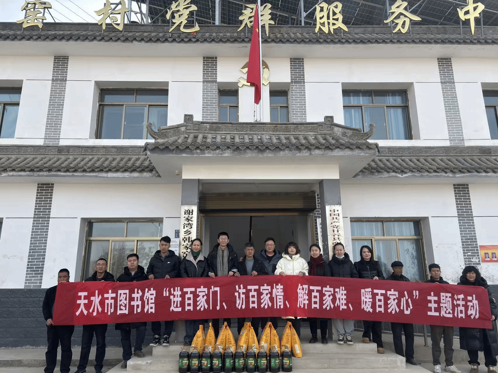 为持续巩固拓展脱贫攻坚成果、扎实推进乡村振兴帮扶工作,落实单位帮扶责任,1月27日上午,天水市图书馆组织慰问小组远赴帮扶村开展“进百家门、访百家情、解百家难、暖百家心”主题慰问活动。与村民们面对面交流、心贴心沟通,把党和政府的关怀以及图书馆的深情厚谊送到群众心坎上。