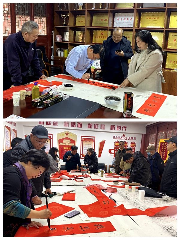 随后,活动进入充满年味的“写春联、送福字”环节。市文旅局机关离退休党支部书记、市书协原副主席彭卫和有书法特长的老党员、市文化馆的专业书法工作者一起挥毫泼墨、笔走龙蛇,将美好的新春祝福倾注于一笔一画之中。一副副寓意吉祥的春联、一个个饱满的“福”字,不仅传递着浓浓的年味,更承载着党组织对结对共建单位党员及社区党员的深切关怀。活动现场墨香四溢,气氛热烈融洽,党群、干群关系在欢声笑语中进一步拉近。