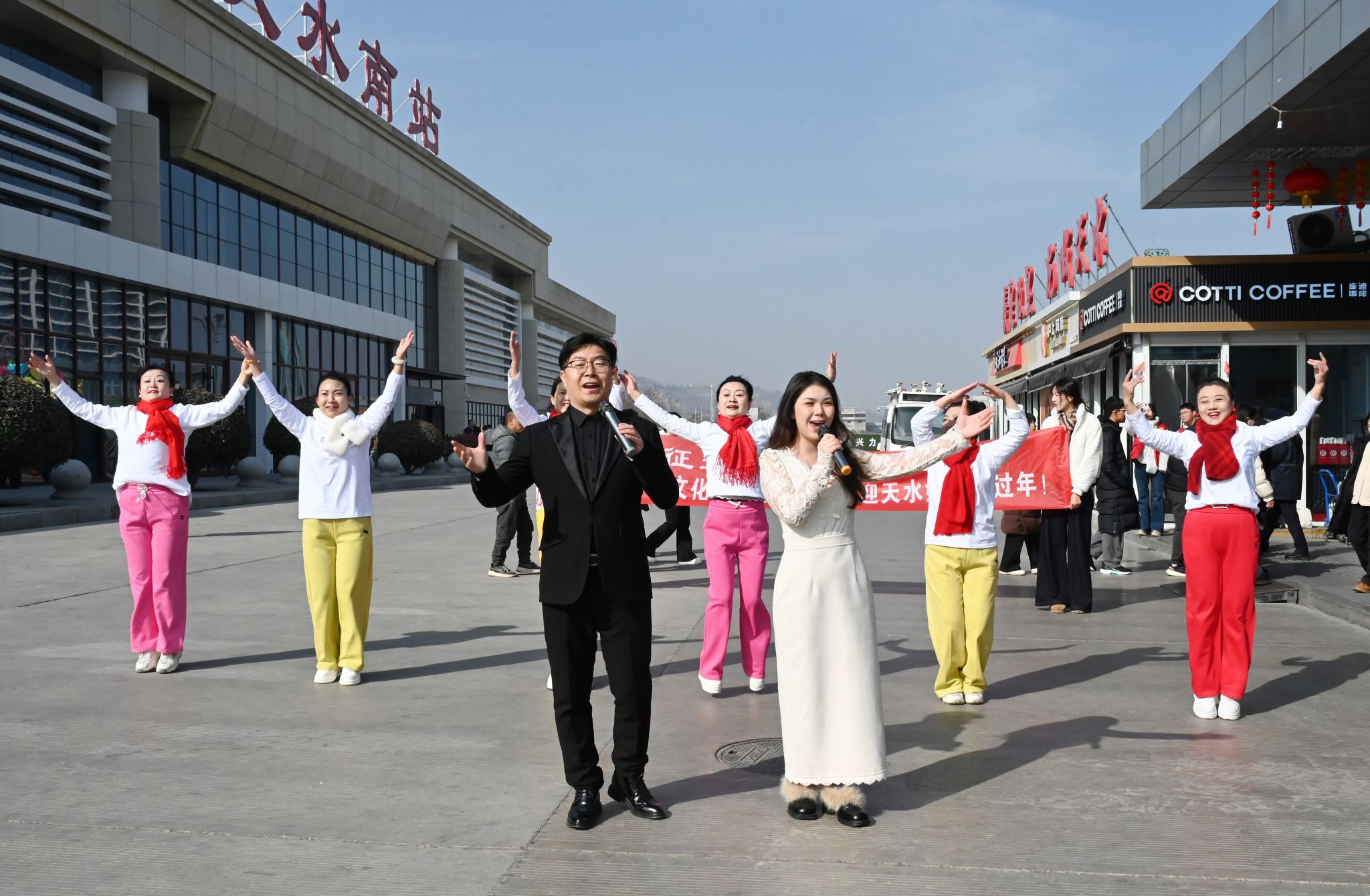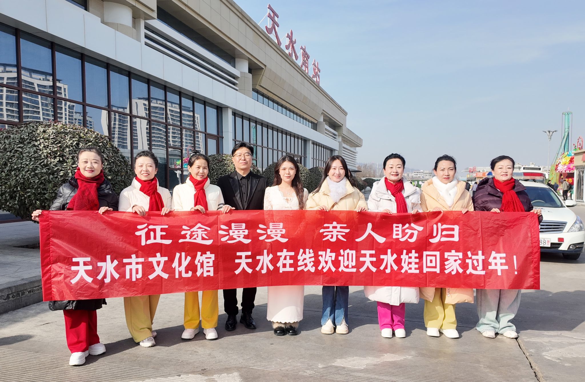2月13日(农历腊月廿七),年味渐浓的天水南站人潮涌动。正值春运返乡高峰,由天水市文化馆、天水在线联合开展的“欢迎天水娃回家过年”文艺暖心活动在此温情上演。这场以“征途漫漫,亲人盼归”为主题的迎春接站,用熟悉的乡音、热情的歌舞,为风尘仆仆的游子拂去一身疲惫,送上第一缕家乡的温暖。