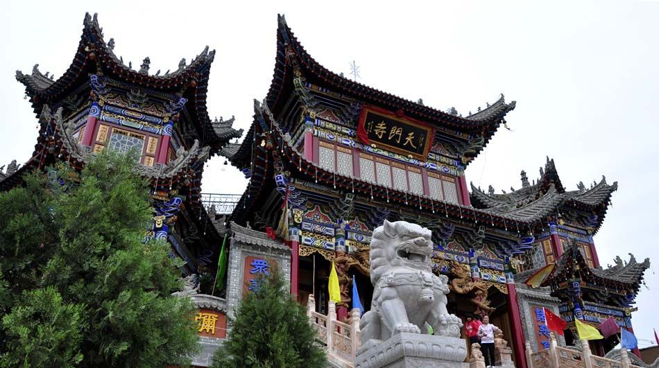 天门山是甘谷县名胜风景旅游区之一,自古以来有“天门春晓”的美誉。山巅有始建于秦汉、重建于宋仁宗天圣年间(公元1023年—公元1031年)的东岳庙。天门山山势巍峨连峰耸峙,古木成林,山花似锦。南岭渠水,潺潺环绕;盘山公路,直通山顶,是观赏城区景色的最佳去处。