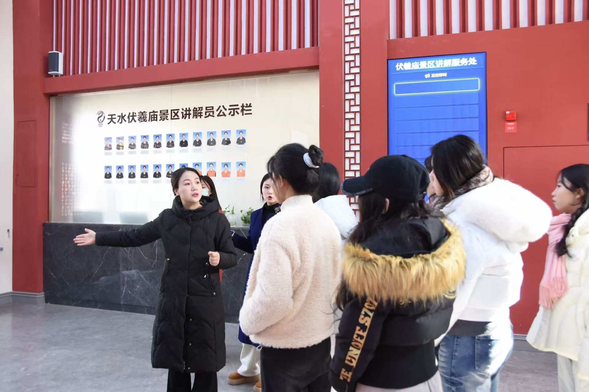 新春渐近,年味渐浓。天水伏羲庙景区已红灯高挂、龙旗舒展,节日氛围日益浓厚。为保障春节假期接待服务平稳有序,天水市博物馆在伏羲庙游客服务中心,对社会招募的35名志愿者开展了2026年春节节前专项培训,为新春志愿服务按下“预热键”。
