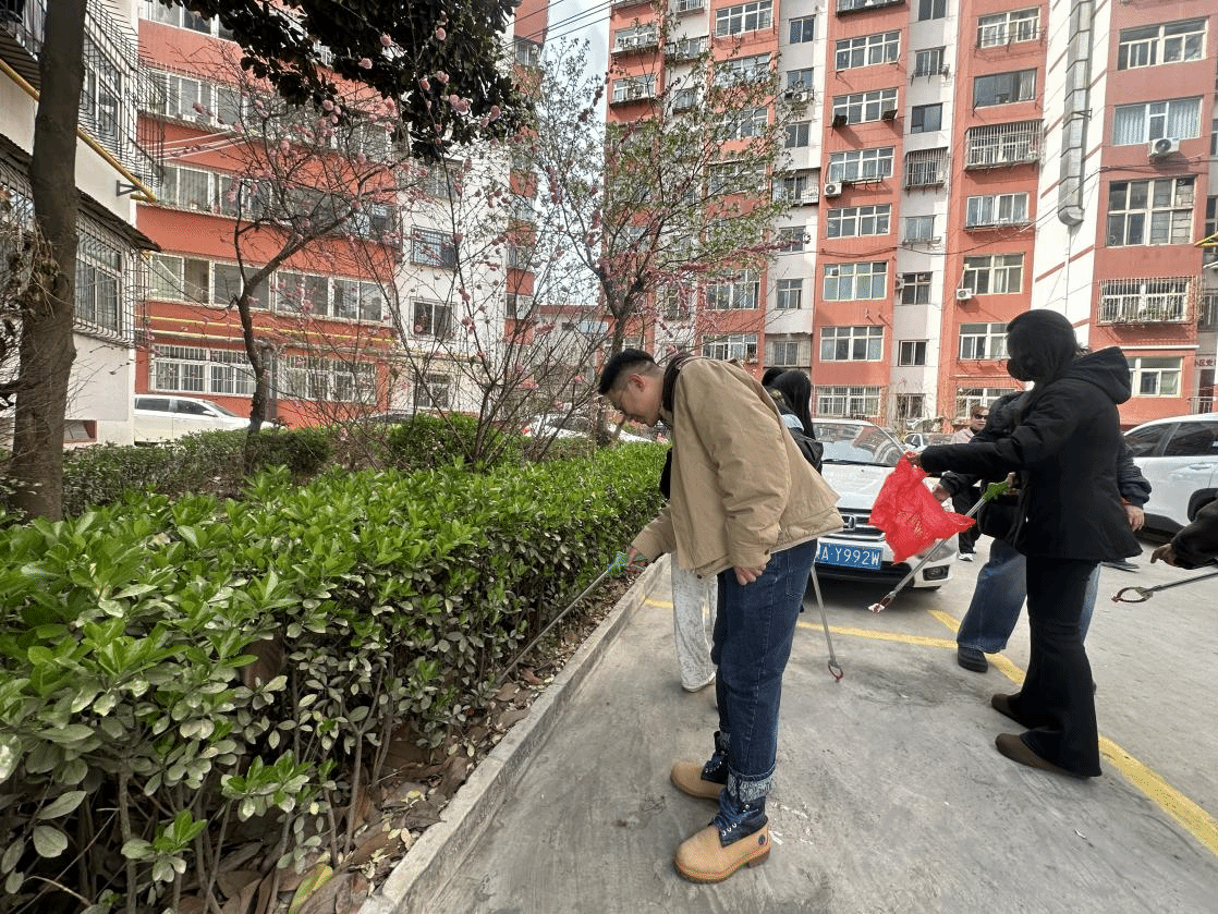 另一组志愿者手持扫帚、抹布、垃圾袋等清洁工具,对社区院落、公共花园及周边道路开展全方位环境卫生整治。大家不畏脏乱、干劲十足,认真清扫路面垃圾,细致捡拾花园内的纸屑、塑料袋等杂物,彻底清理卫生死角与乱堆乱放的废弃物。志愿者们忙碌的身影穿梭在社区各处,成为春日里一道温暖动人的风景线。经过一番辛勤劳作,社区院落、花园环境变得干净整洁、井然有序,为辖区居民营造出更加舒适宜居的生活空间。
