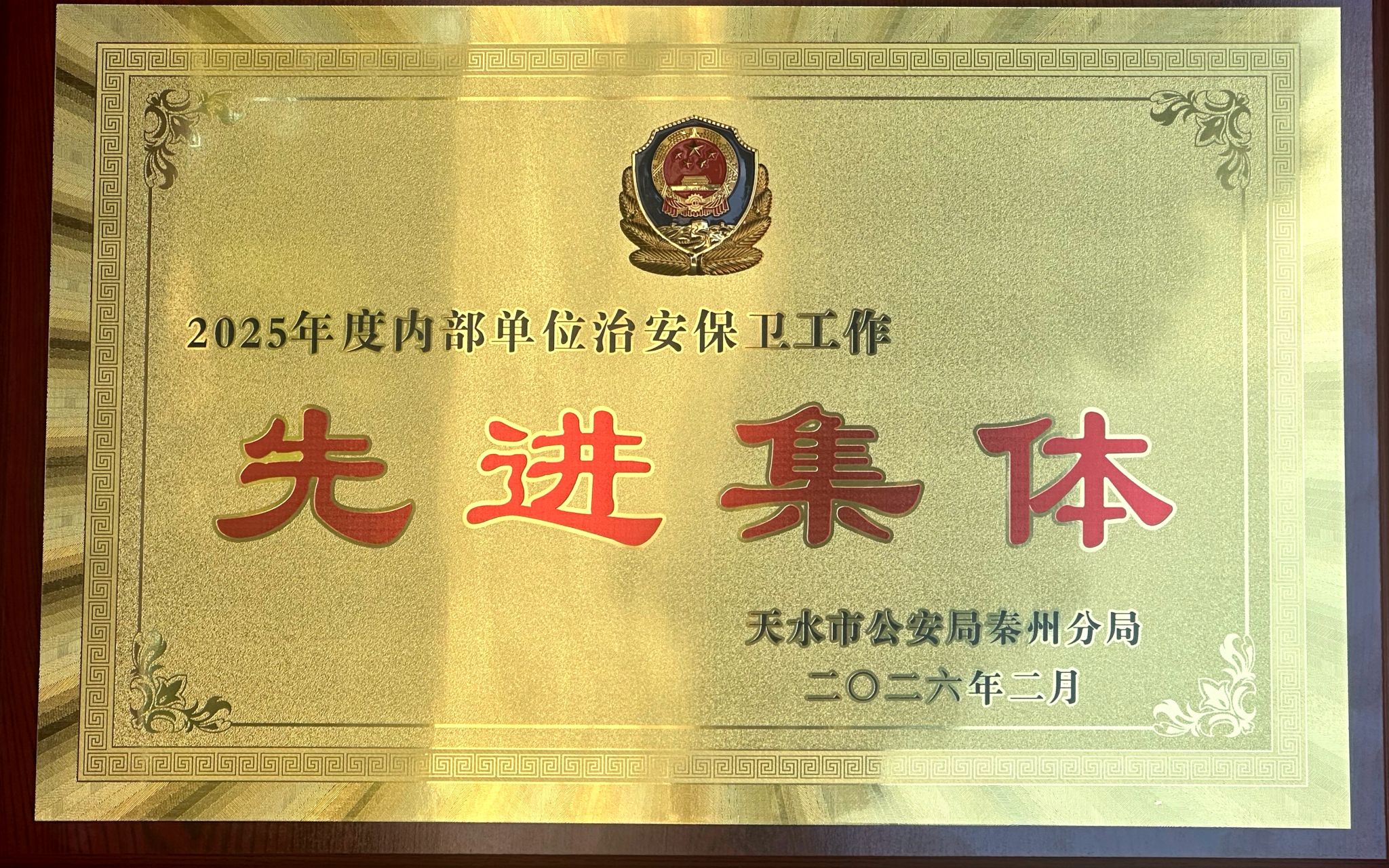 2026年3月24日,天水市博物馆荣获“2025年度内部单位治安保卫工作先进集体”,安全保卫部主任雷德延同志荣获“2025年度内部单位治安保卫工作先进个人”荣誉称号。这是天水市博物馆自2005年以来,连续二十一年获得先进集体荣誉称号。