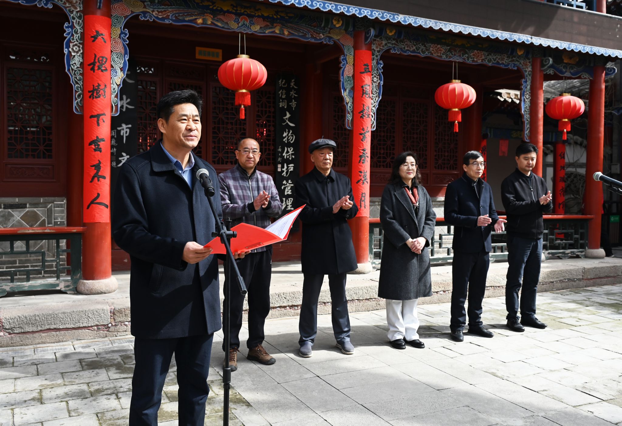 4月3日,天水市文化馆2025年学员书画作品汇报展暨2026年免费培训班开班仪式在纪信祠举行。著名画家、天水市美协原主席张玉璧,天水师范大学美术与艺术设计学院院长刘晓毅,市书协第五届主席周宇春,市文化和旅游局调研员陈芳等嘉宾以及2026年免费培训班学员代表200余人参加了仪式并观看展览。
